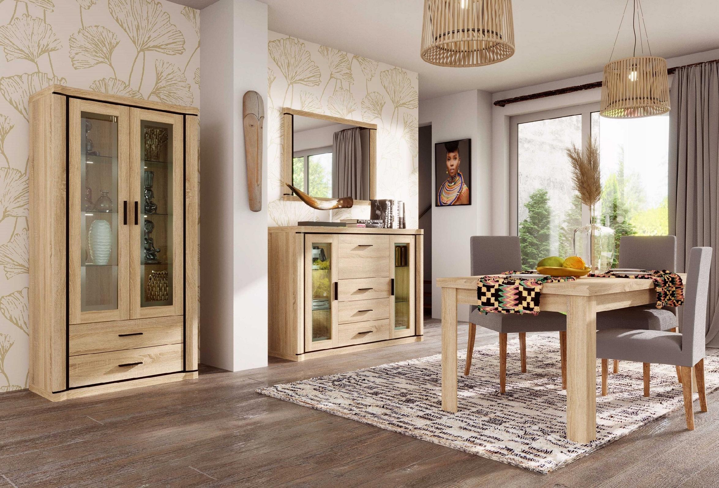 system składa się z : szaf, witryn, komód, szafek rtv, półek, ław, stołu