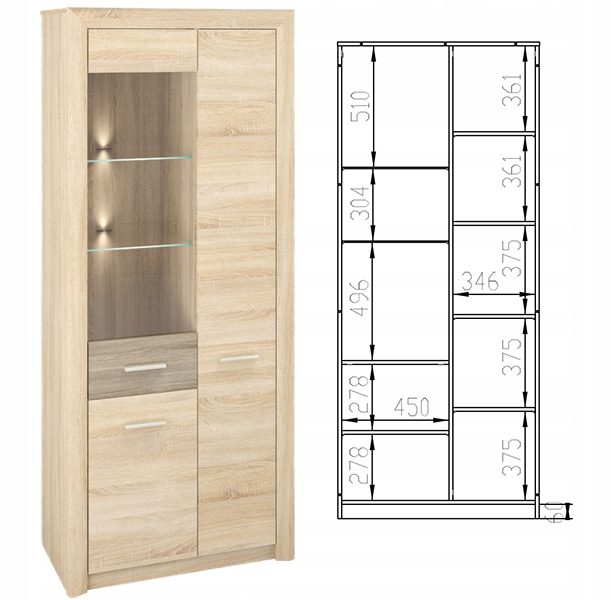 - witryna 02 : 85 x 201 x 43 cm, bez oświetlenia