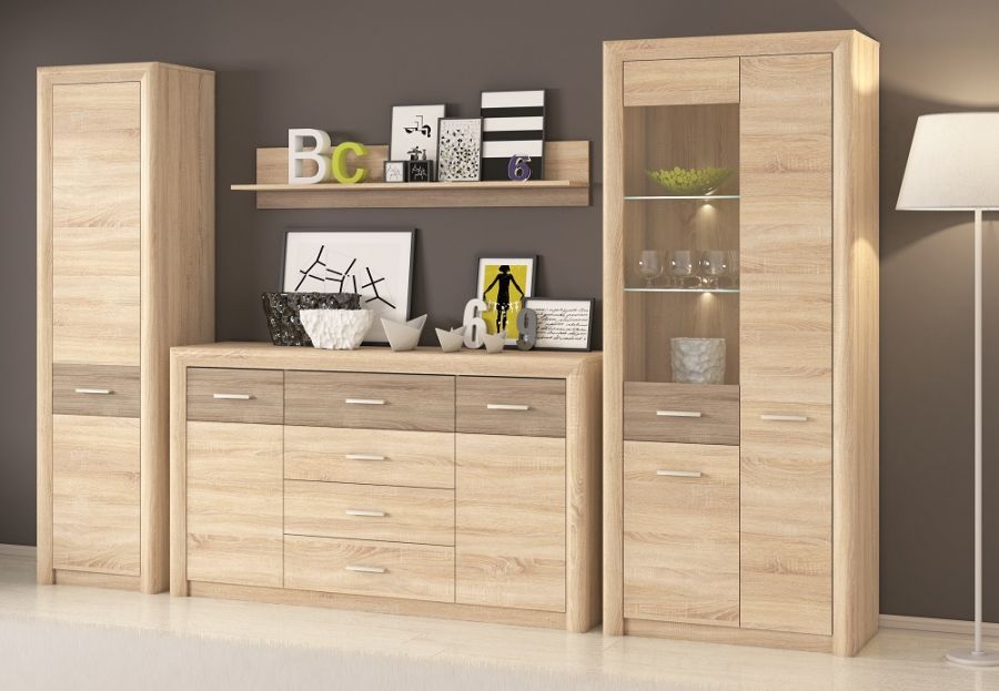Meble do salonu CASTEL meblościanka zestaw 4 el. dąb sonoma szafa komoda