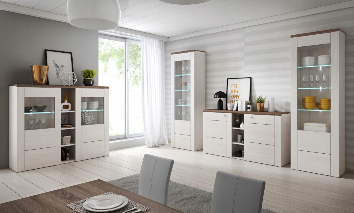 Meblościanka LARONA 305cm zestaw mebli biały dąb sonoma nowoczesna