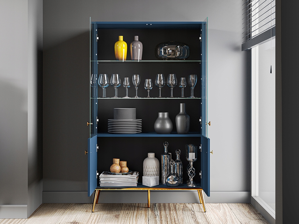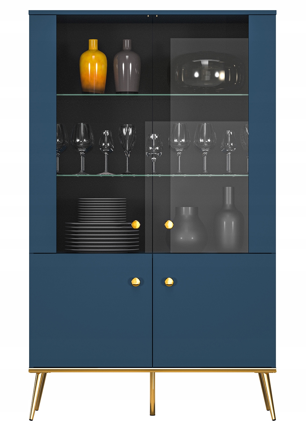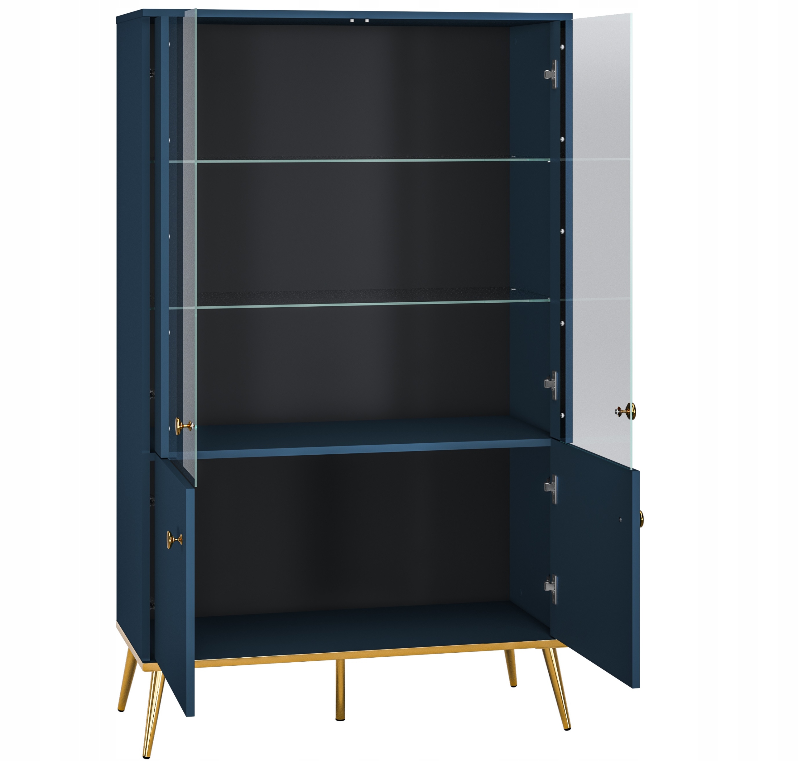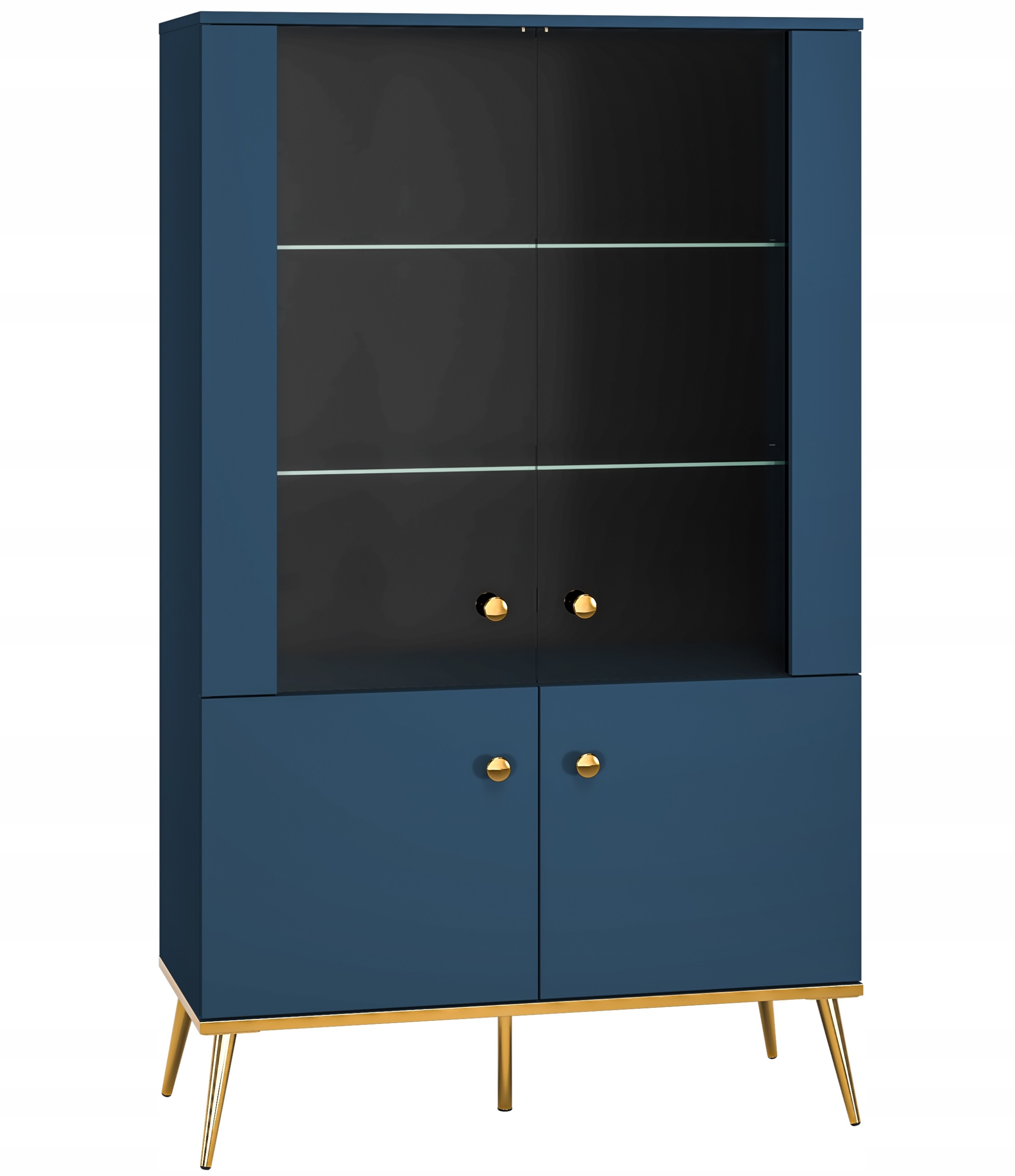 Niebieska Witryna MARINE 02 ML MEBLE Błękit + złoty 92 x 152 INDYGO