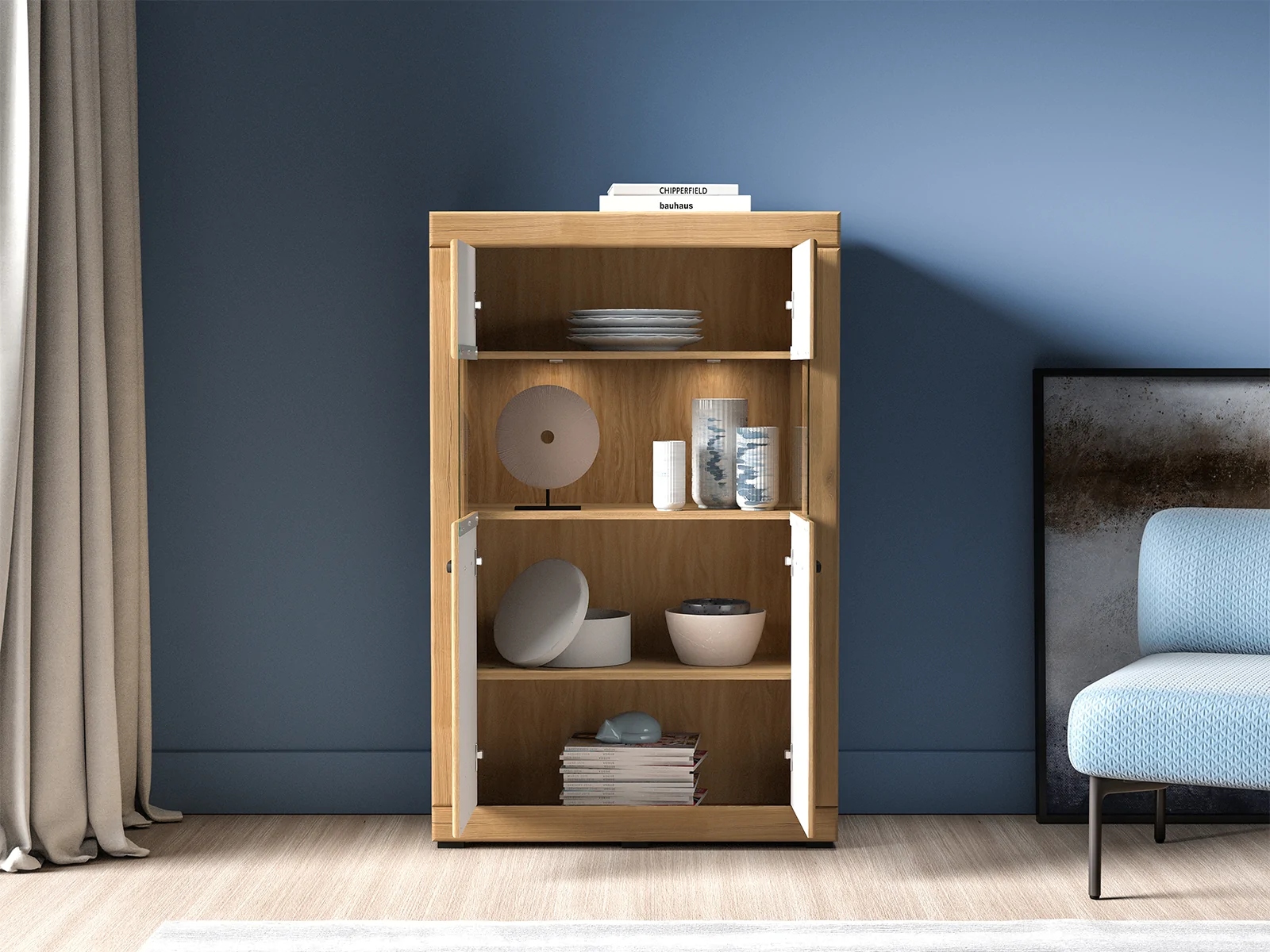 Witryna Dora 03 to mebel, dzięki któremu przechowasz i wyeksponujesz swoje ulubione przedmioty. Mebel podzielony jest na trzy części. Górna i dolna to miejsca niedostępne dla oczu Twoich gości. W trzech pojemnych wnękach schowasz obrusy, ręczniki lub inne domowe tekstylia. Środkowa część to przestrzeń za szkłem. Dzięki niej wyeksponujesz ulubione przedmioty – porcelanowe filiżanki czy piękną, stylową zastawę. Wybierz witrynę Dora i zachowaj porządek w swoim wnętrzu.