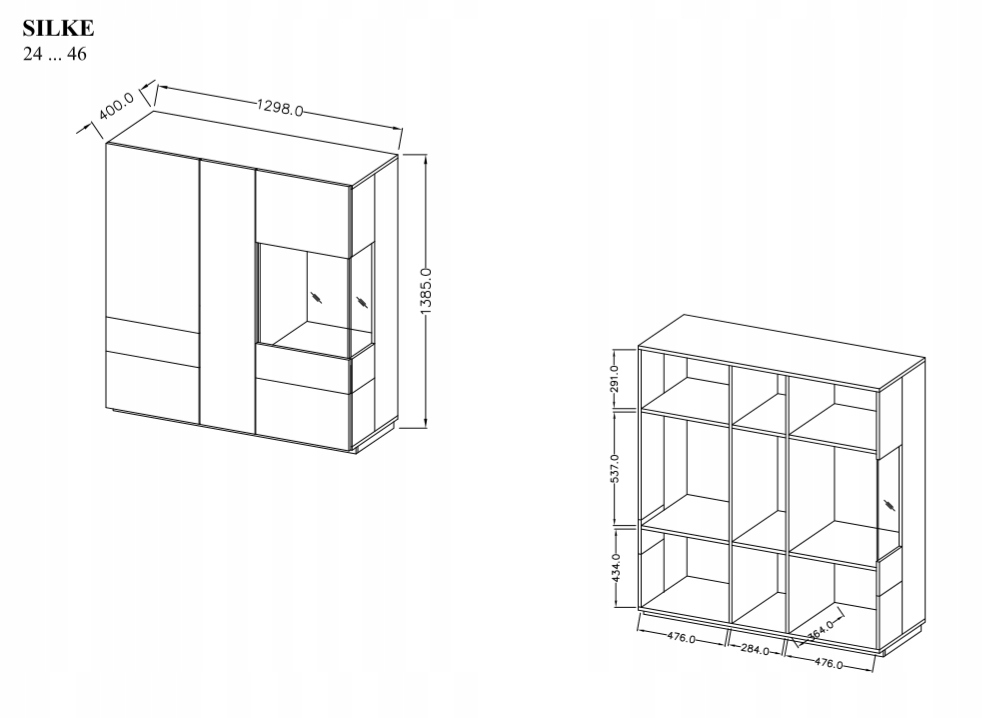Kolekcja SILKE to idealny wybór dla miłośników nowoczesnych aranżacji o eleganckim charakterze. Kolekcja ta wyróżnia się minimalistycznymi frontami o oryginalnym wykończeniu. Wchodzące w jej skład meble staną się podstawą wyposażenia, a zarazem stylową wizytówką salonu czy pokoju dziennego. Seria SILKE dostępna jest w trzech ciekawych wariantach kolorystycznych: w odcieniu metra lub białym połysku, przełamanych wstawkami o charakterystycznym wybarwieniu dębu wotan lub białym połysku z wstawkami w modnym obecnie kolorze betonu.