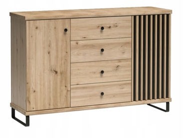 Nowoczesna Komoda CALI 142 cm dąb artisan + czarne lamele + metalowe nogi
