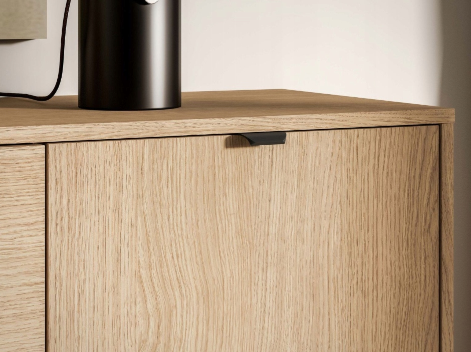 Minimalistyczne uchwyty – subtelne, krawędziowe wykończenie w kolorze czarnym.