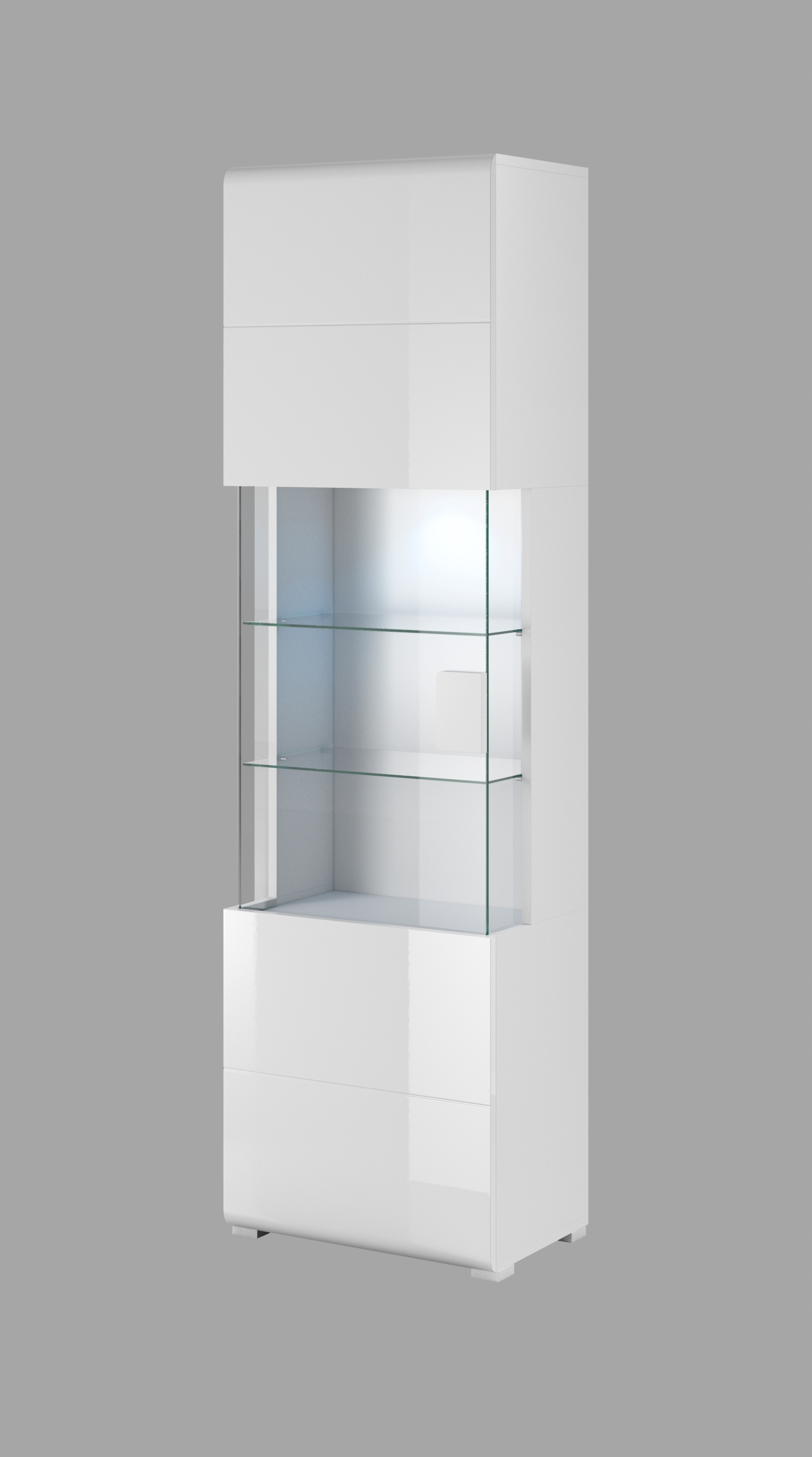 • Efektowny biały połysk: Fronty wykonane z płyty MDF pokrytej folią membranową w wysokim połysku nie tylko wyglądają luksusowo, ale również optycznie powiększają i rozświetlają wnętrze.