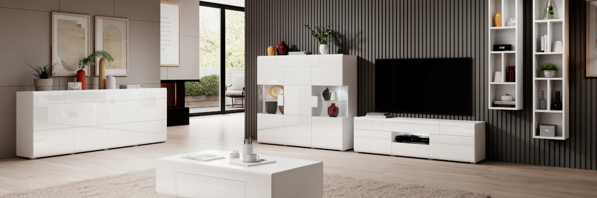 Meblościanka Toledo od producenta Helvetia Wieruszów to kwintesencja nowoczesnego stylu, która łączy minimalistyczną biel z ciepłymi detalami. Jest to idealny wybór dla osób szukających eleganckich i trwałych mebli do salonu.