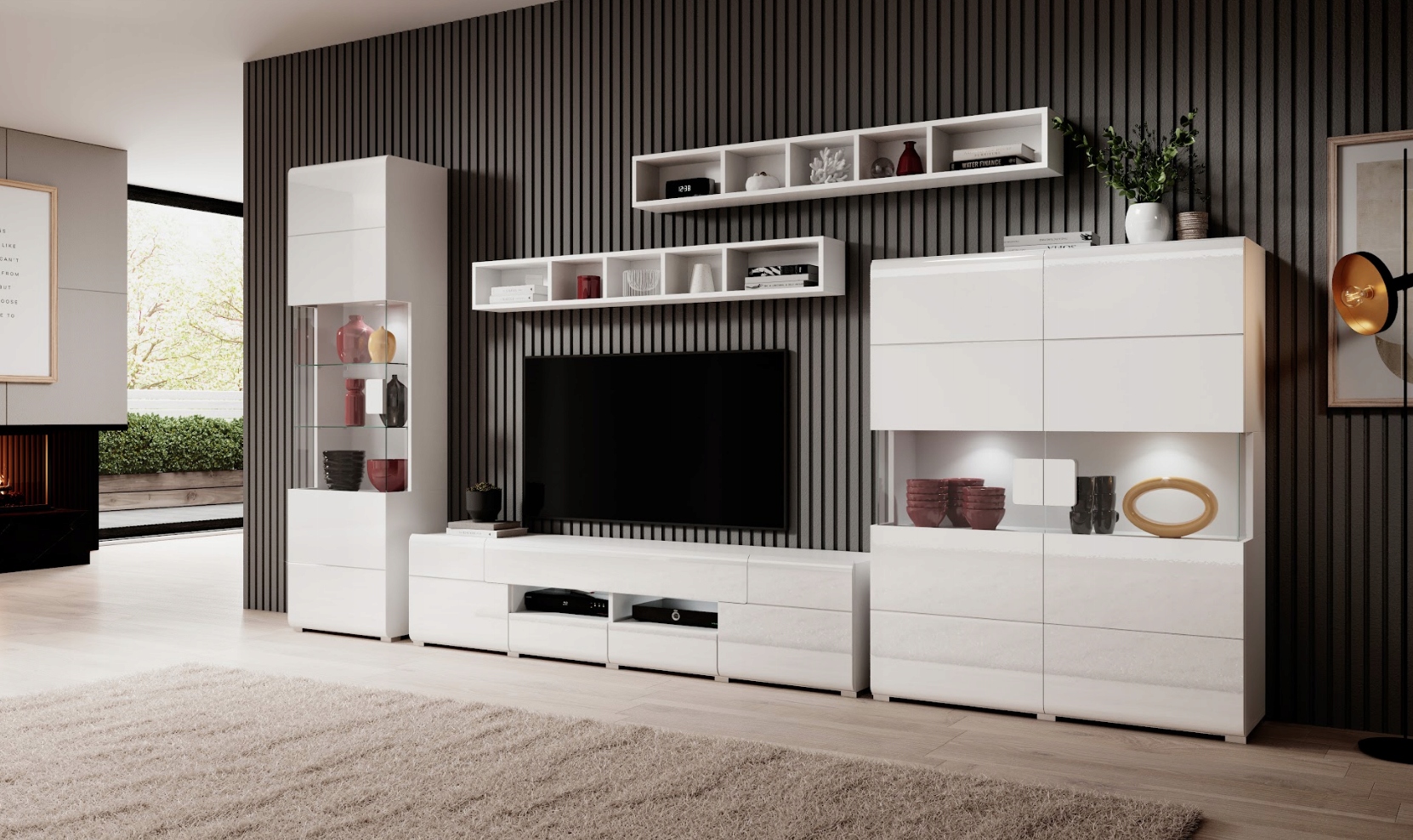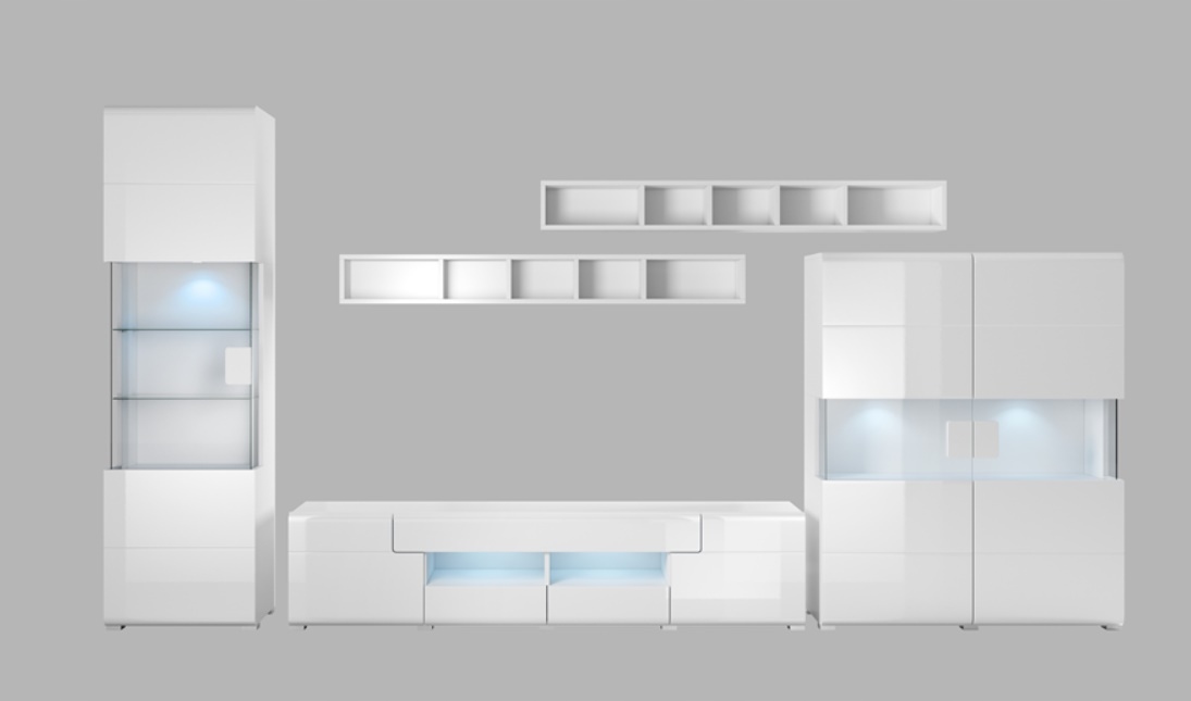 Nowoczesna Meblościanka Salon Biały Połysk TOLEDO zestaw 391 – 420cm