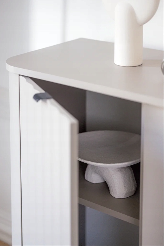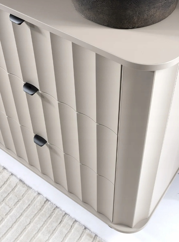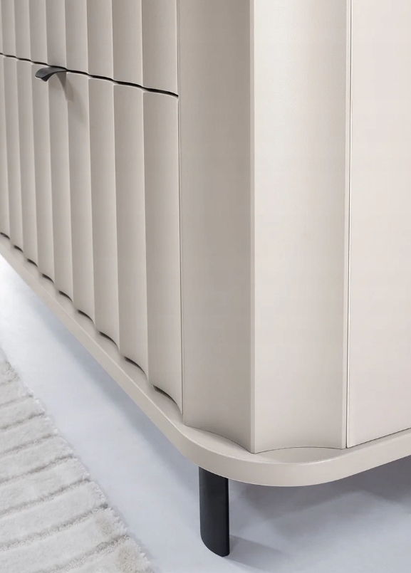 Charakterystyczne dla kolekcji NOVADO zaokrąglone krawędzie dodają lekkości i miękkości formie, a subtelny metalowy uchwyt stanowi nowoczesny, ale stonowany detal.
