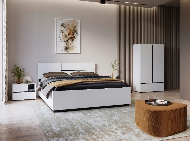 Wprowadź do swojej sypialni harmonię i spokój dzięki zestawowi mebli w stylu minimalistycznym, utrzymanych w eleganckiej, matowej bieli. Proste formy, gładkie powierzchnie i brak zbędnych detali podkreślają nowoczesny charakter wnętrza, jednocześnie tworząc atmosferę lekkości i przestronności.
