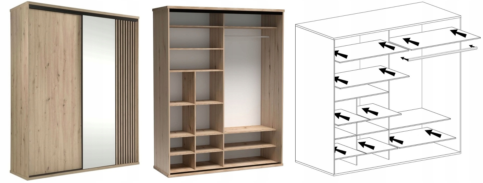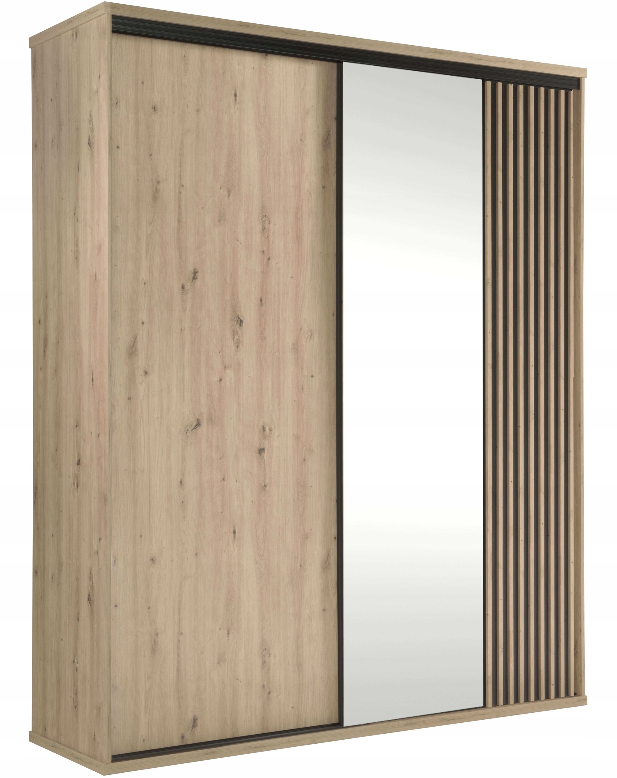 Nowoczesna Szafa z lustrem Cali 179 x 216 x 60,2 cm dąb artisan z Lamelami