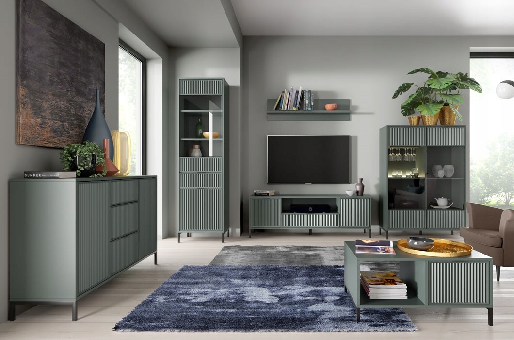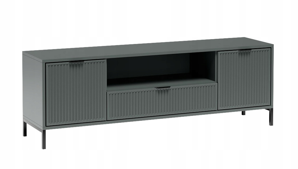 Nowoczesna szafka komoda RTV 165cm ryflowane fronty metal nogi green zieleń