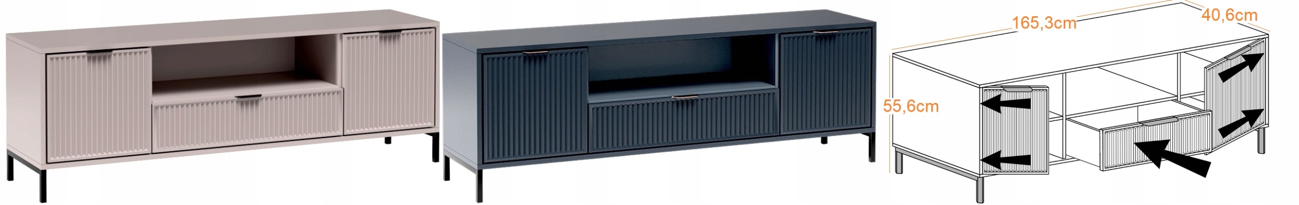 Nowoczesna szafka komoda RTV pod TV ryflowane fronty kaszmir Cahmere 165
