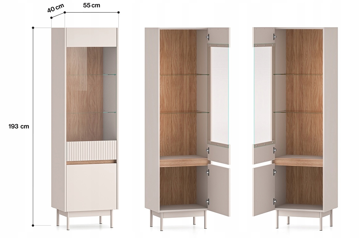 Nowoczesna witryna Kaszir DUNEA 02 193 x 55 x 40 ML kaszmirowa beż MODERN
