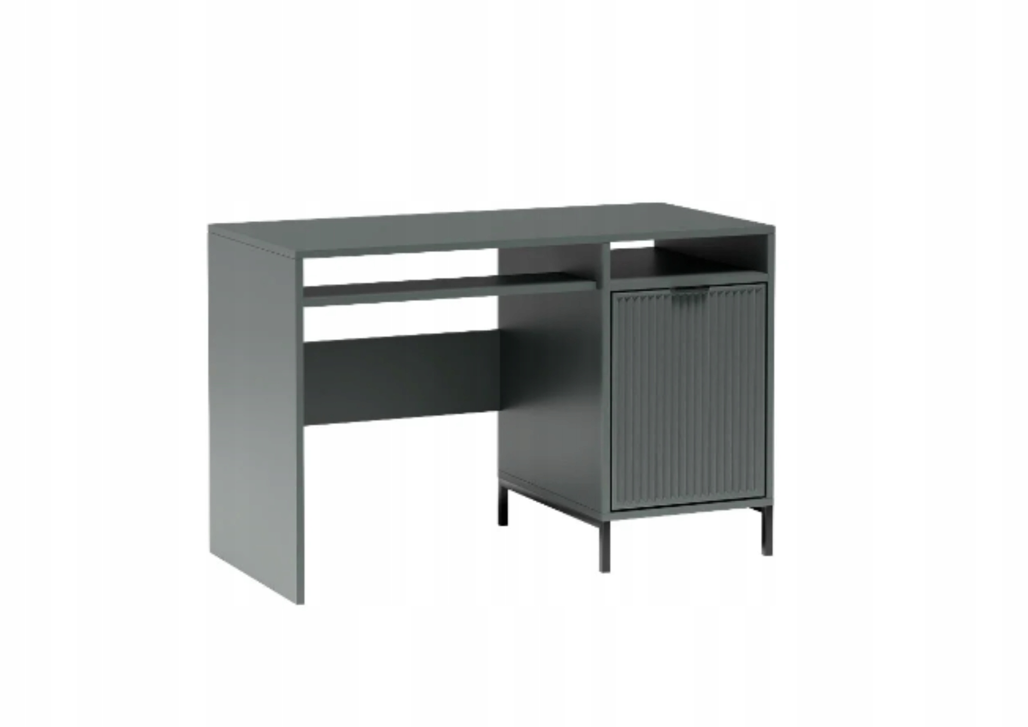 Nowoczesne biurko dostępne w trzech opcjach kolorystycznych:  cashmere, indigo i green stone. Idealnie wpasuje się do pokoju młodzieżowego bądź biura. W meblu znajdziemy wysuwaną półkę na klawiaturę od komputera, ale też szafkę po prawej stronie z półką, która dzieli nam przestrzeń na dwie odrębne części.