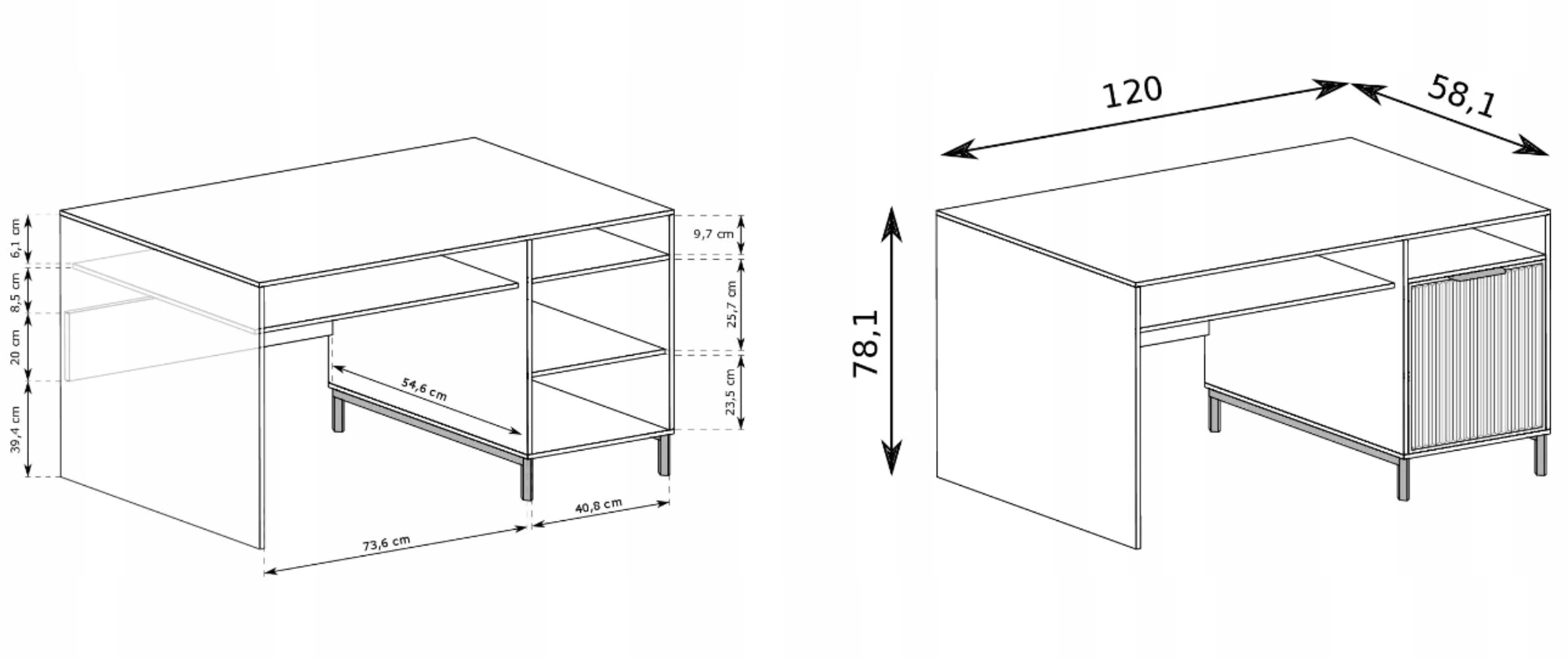 Nowoczesne kaszmirowe biurko LINAsTYLES Cashmere 120cm ryflowany front PL