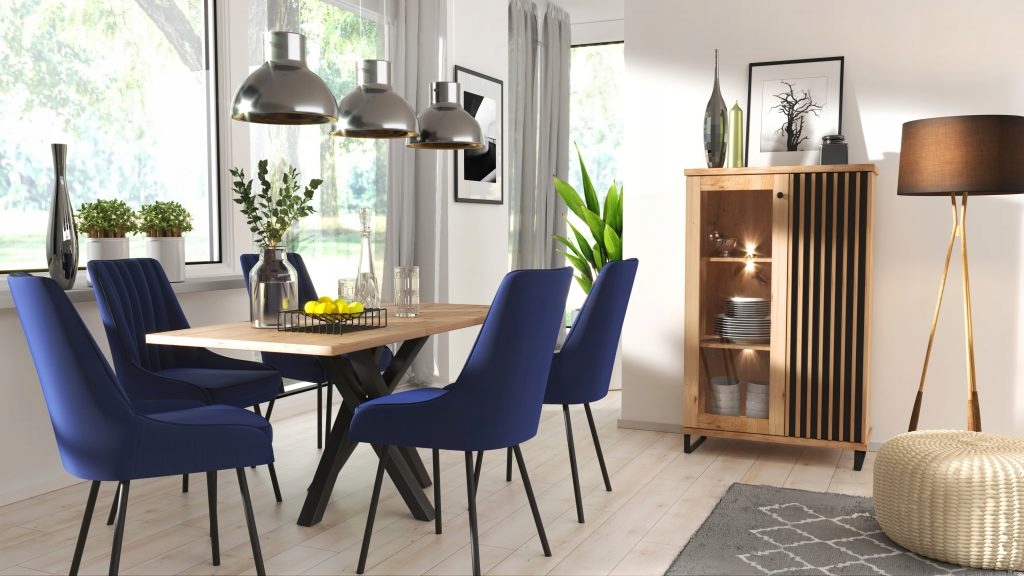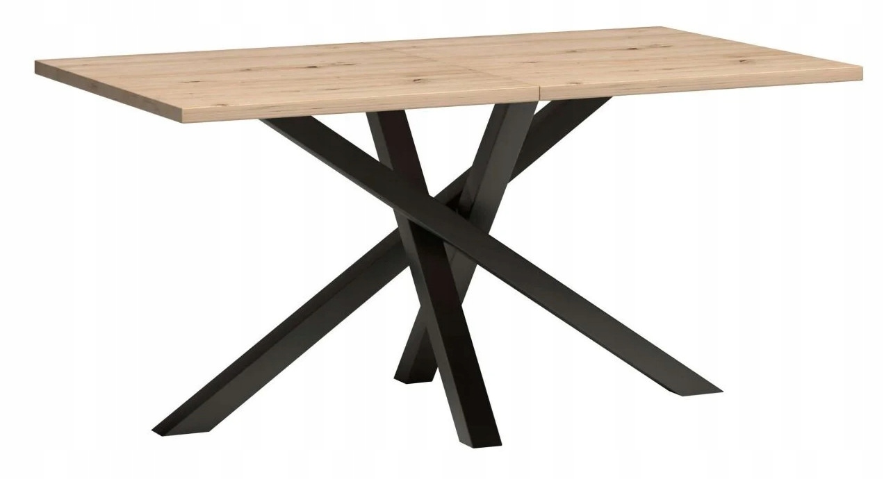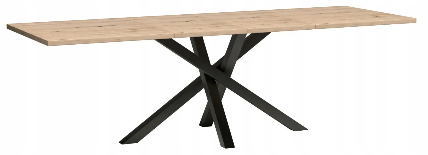 Rozkładany stół z dużym blatem do jadalni, salonu. Nogi są wykonane z metalu, pomalowane proszkowo na czarny kolor. Stół przed rozłożeniem ma długość 160 cm. Korzystając z 2 dołączonych wkładek (50 cm), możemy mieć duży mebel na rodzinne obiady i przyjęcia. Stół rozkłada się aż do rozmiaru 260 cm. Połączenie jasne, naturalnego koloru artisan z czarnymi, metalowymi nogami to dizajnerski sposób na aranżację jadalni. Stół pasuje do nowoczesnych industrialnych, loftowych wnętrz, jaki i klasycznych wystrojów.