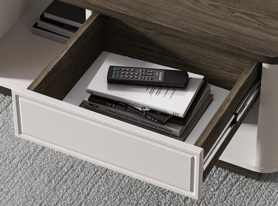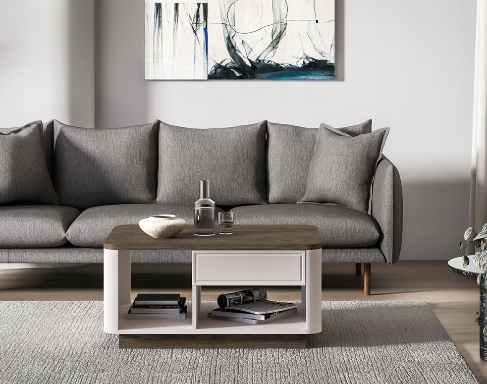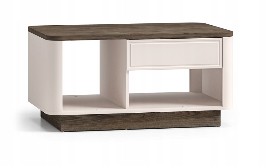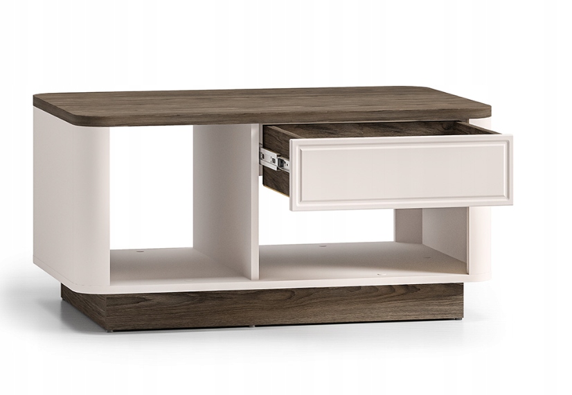 To mebel idealny do pokoju dziennego. Postawisz na nim filiżankę kawy lub odłożysz czytaną gazetę. Szeroki blat pozwoli też wyeksponować na przykład Twoje ulubione albumy. Dwie pojemne wnęki pod blatem to świetne miejsce na przechowanie książek czy kolekcji magazynów. Dzięki wygodnej szufladzie szybko i łatwo schowasz np. piloty do telewizora. Wybierz stolik Vilavio i zachowaj porządek w swoim wnętrzu.