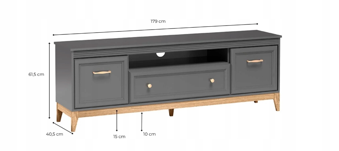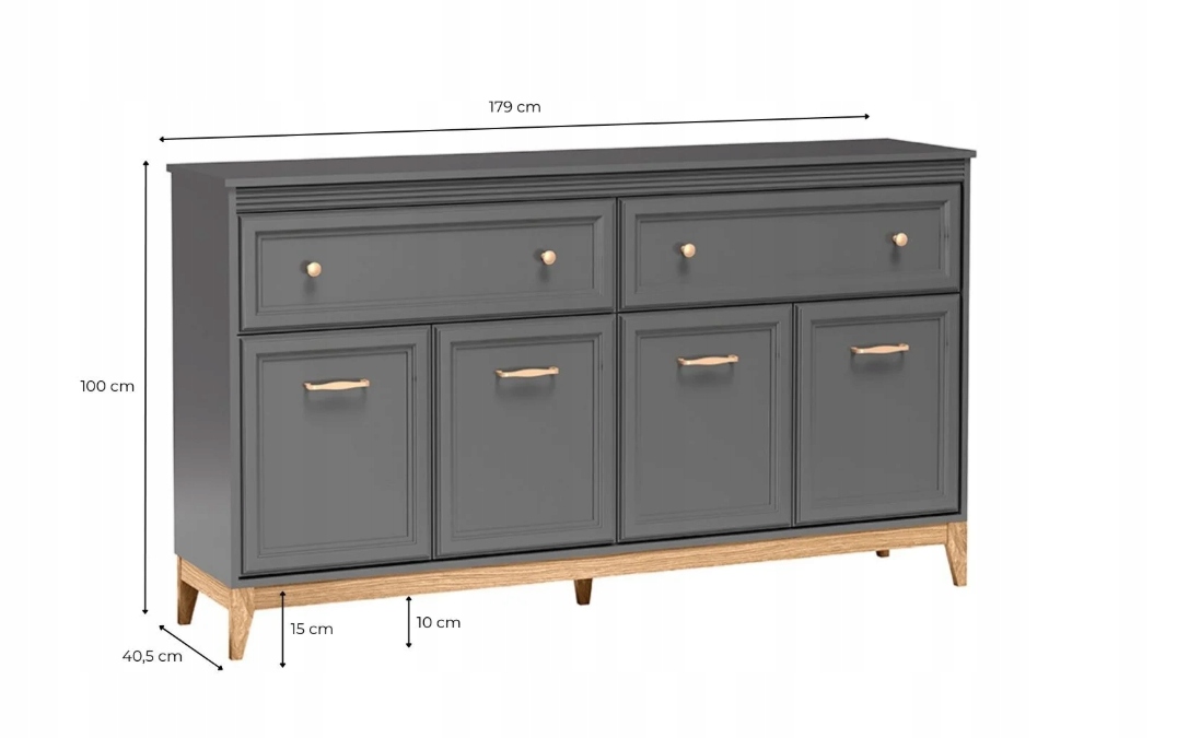 - Drewniane nogi – naturalny kolor, unoszą mebel nad podłogę