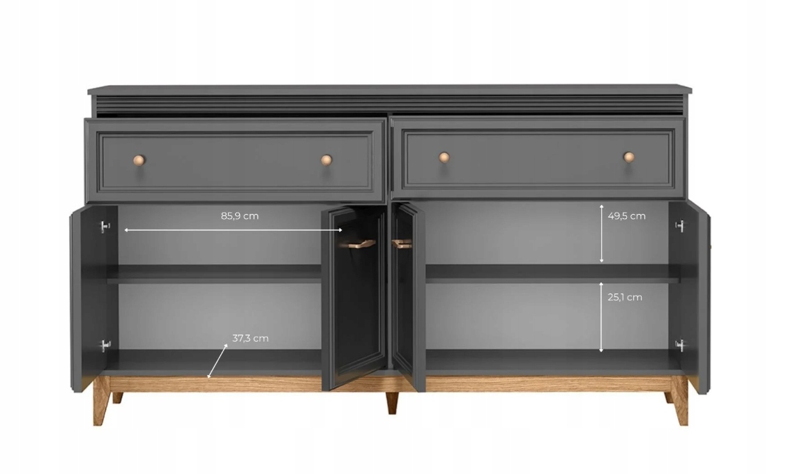 - Fronty MDF 22mm – w kolorze szary diamentowy, matowe wykończenie