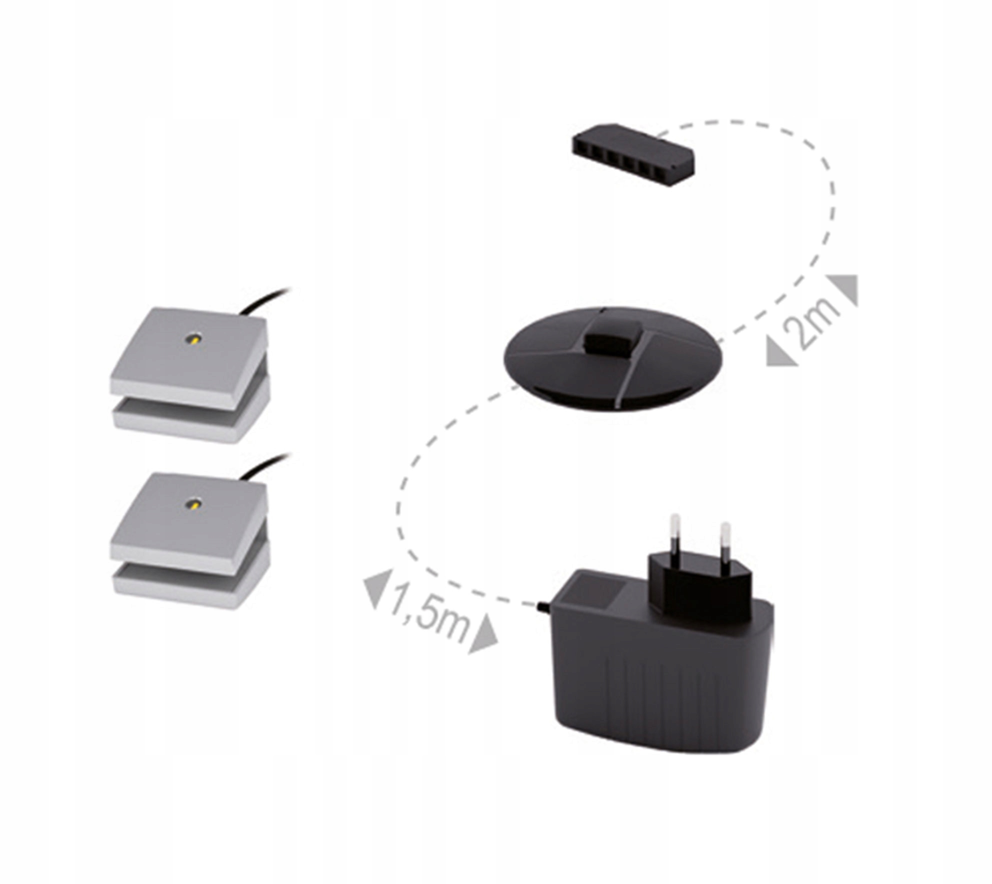 Oświetlenie LED zasilane z zasilacza, o naturalnej barwie białej, dwupunktowe, dedykowane do szklanych półek w kategorii oświetlenie meblowe.