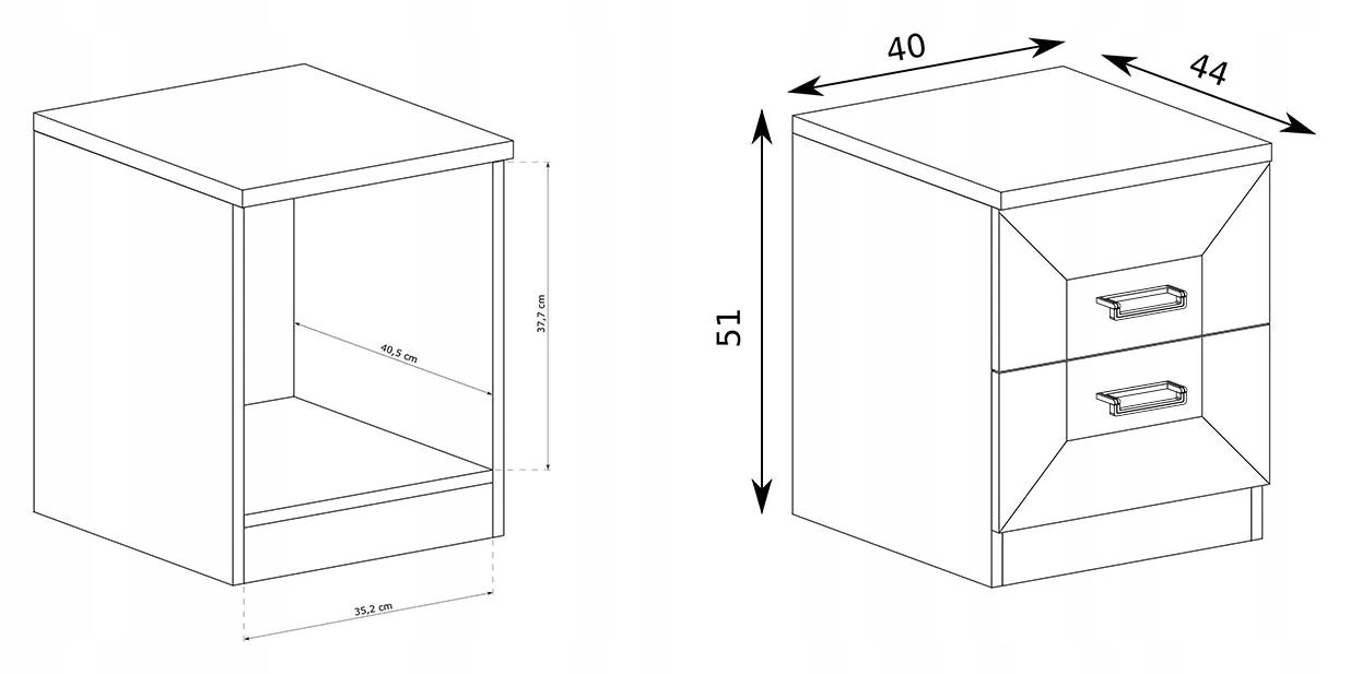 – front oraz korpus wykonane z płyty laminowanej o grubości 16 mm,