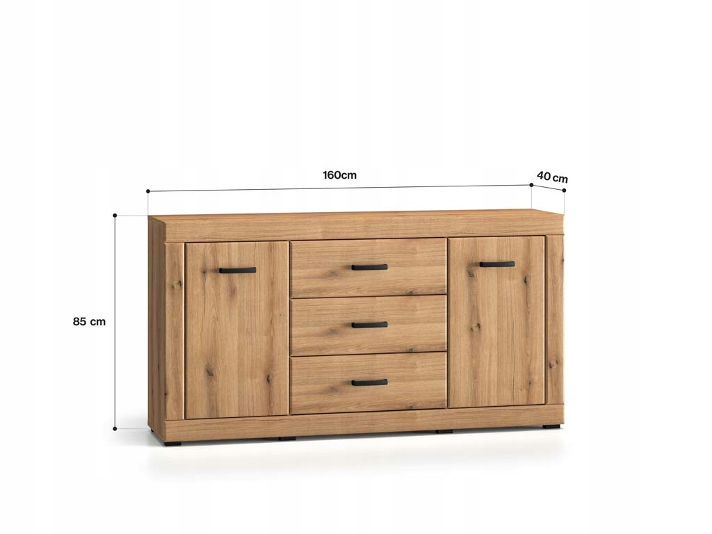 Komoda ma optymalne wymiary: wysokość 85 cm, szerokość 160 cm oraz głębokość 40 cm. Dzięki temu oferuje mnóstwo miejsca do przechowywania, idealnego do sypialni, salonu czy przedpokoju. Mebel jest dostarczany w dwóch paczkach i przeznaczony do samodzielnego montażu, co umożliwia szybkie i łatwe złożenie. Wybierz DORA 04 KOMODA Dąb Evoke i ciesz się wyjątkową jakością oraz nowoczesnym stylem w Twoim domu!
