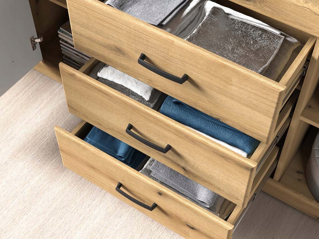 Szuflady ze wzmocnionym dnem oraz opcją pełnego wysuwu.