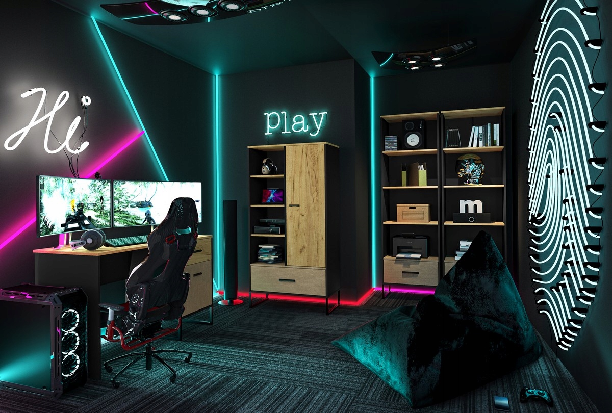 - Unikalny design: Kontrastowe połączenie dekoru Dąb Craft Złoty z matową Czernią i wstawkami w kolorze Stal Premium nadaje wnętrzu nowoczesny, loftowy charakter.