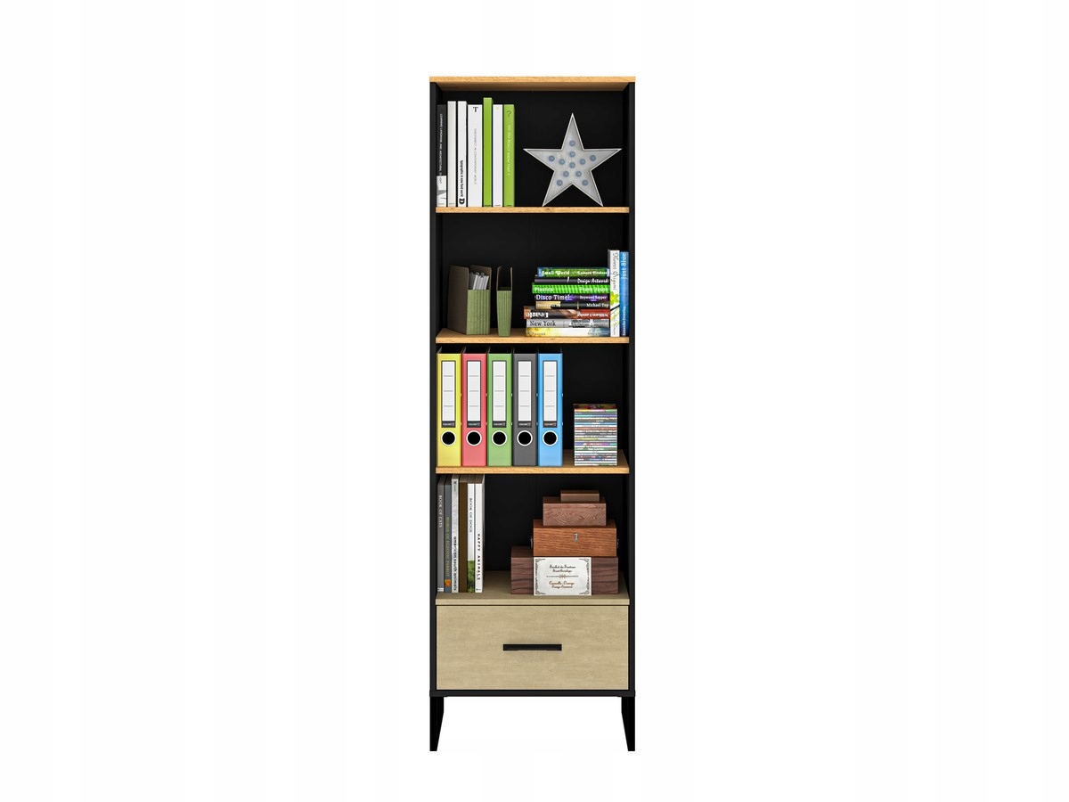 Colt 03 Dąb craft złoty/Czarny-Stal premium – regał 1D1S to doskonałe rozwiązanie dla Twojego pokoju młodzieżowego. Produkt pochodzi z kolekcji Colt, a marką odpowiedzialną za jego stworzenie jest ML Meble, znana ze swojej wysokiej jakości i precyzji wykonania.