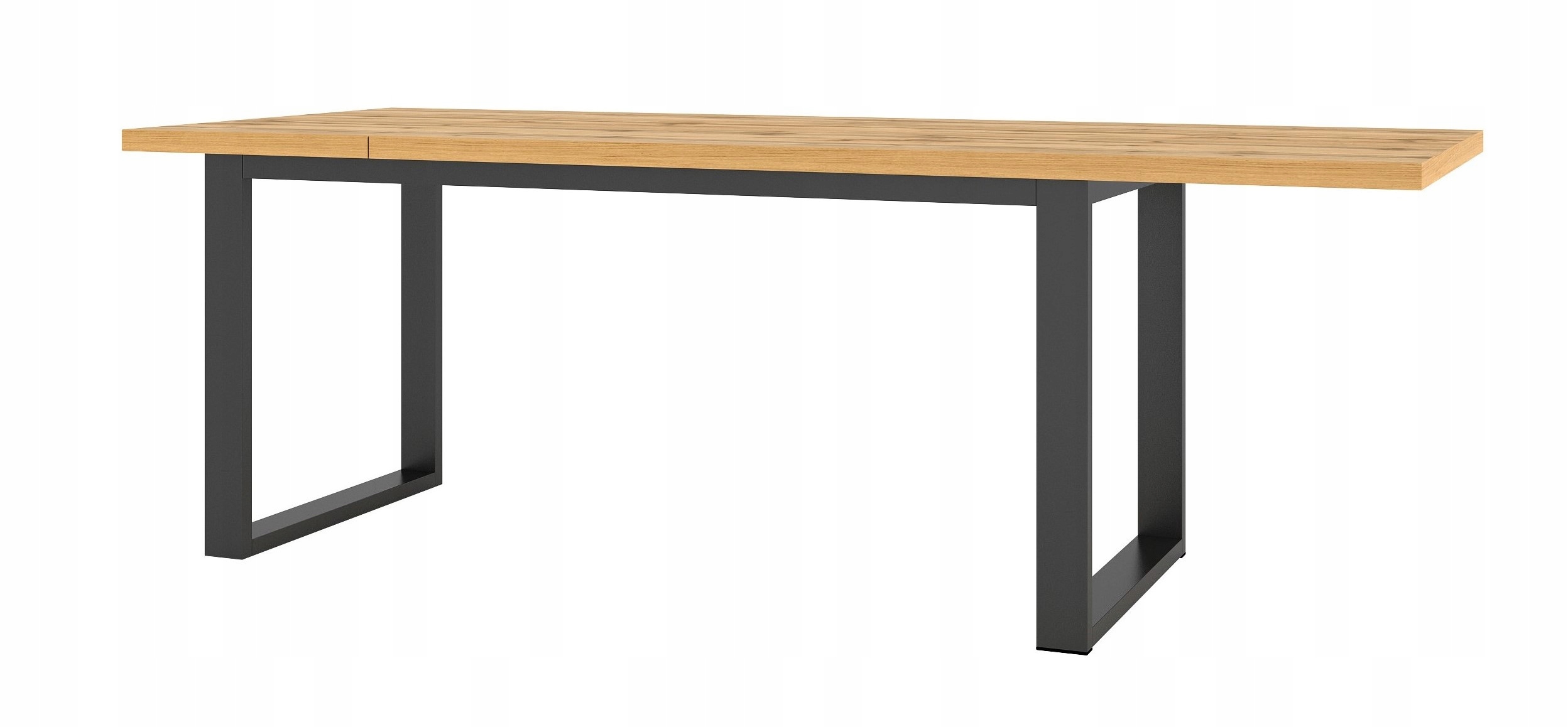 Duży, loftowy stół do jadalni i salonu z kolekcji Halle. Idealny do industrialnych i minimalistycznych aranżacji. Masywny blat w kolorze dąb wotan oraz czarne, metalowe nogi o surowym charakterze tworzą efektowny i modny stół, przy którym zmieści się cała rodzina. Dodatkowo blat można szybko i łatwo rozłożyć, zwiększając jego powierzchnię. Prosta forma stołu zapewni łatwe dopasowanie krzeseł.