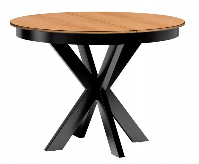 Stół okrągły rozkładany 110 – 150 Dąb Karmel masywny czarne nogi metalowe