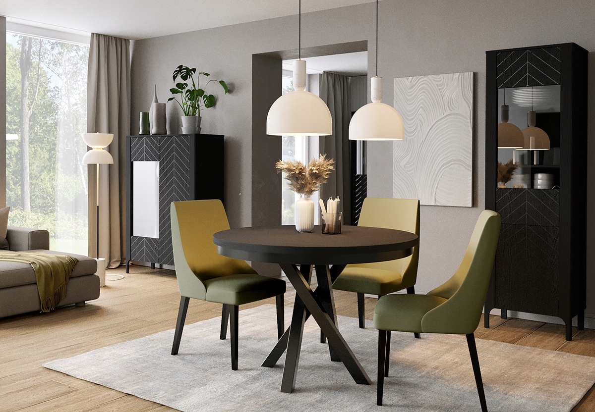 Nowoczesny, okrągły stół MALUMI łączy elegancję z funkcjonalnością. Solidna konstrukcja i skrzyżowane nogi zapewniają stabilność, a minimalistyczna czerń pasuje do różnych aranżacji. Trwałe materiały gwarantują wytrzymałość, a jego forma tworzy komfortową przestrzeń do wspólnych posiłków. Idealny do jadalni, salonu i kuchni.