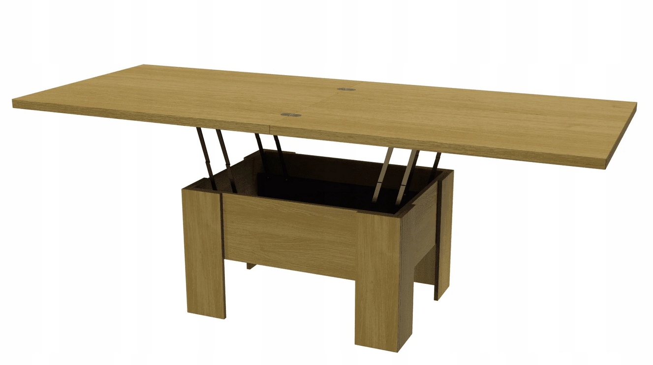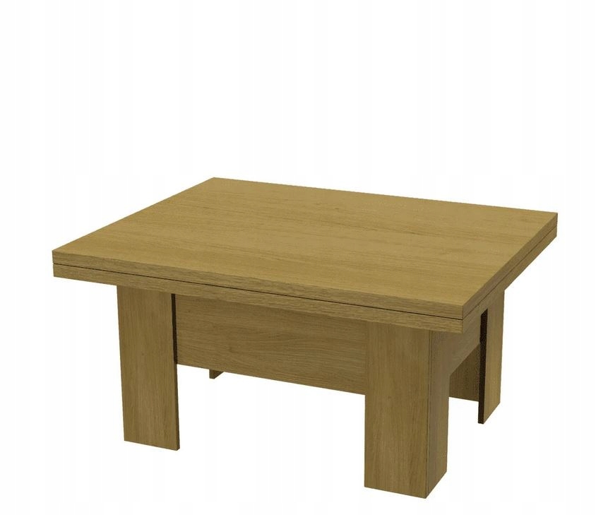 Stolik kawowy Eryk wyróżnia się wysoką funkcjonalnością i nowoczesnym designem. W razie potrzeby stolik można łatwo rozłożyć do szerokości 200 cm. Wysokość rozłożonego stolika wynosi 78 cm.