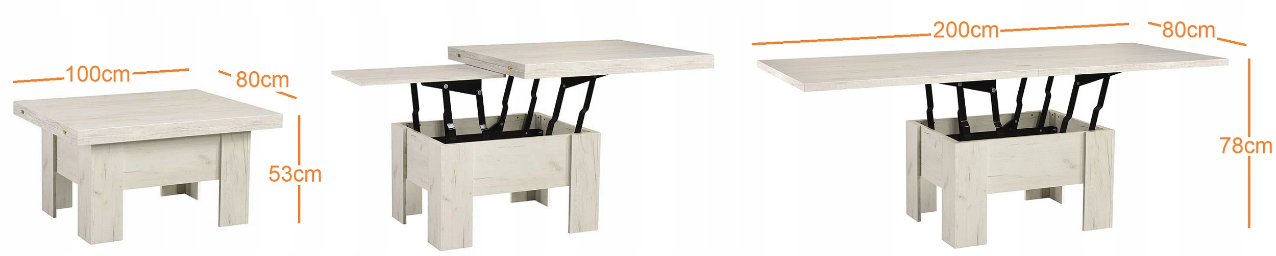Po rozłożeniu stołu zmienia się wysokość z 53 cm do 78 cm.