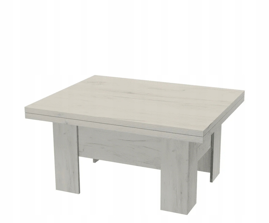 Stolik kawowy ERYK wyróżnia się wysoką funkcjonalnością i nowoczesnym designem. W razie potrzeby stolik można łatwo rozłożyć do szerokości 200 cm. Wysokość rozłożonego stolika wynosi 78 cm.