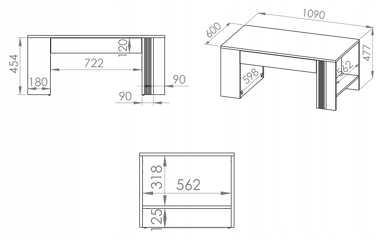 Stolik kawowy ADAGIO ML Meble prostokątny 109 x 60 x 48cm ława