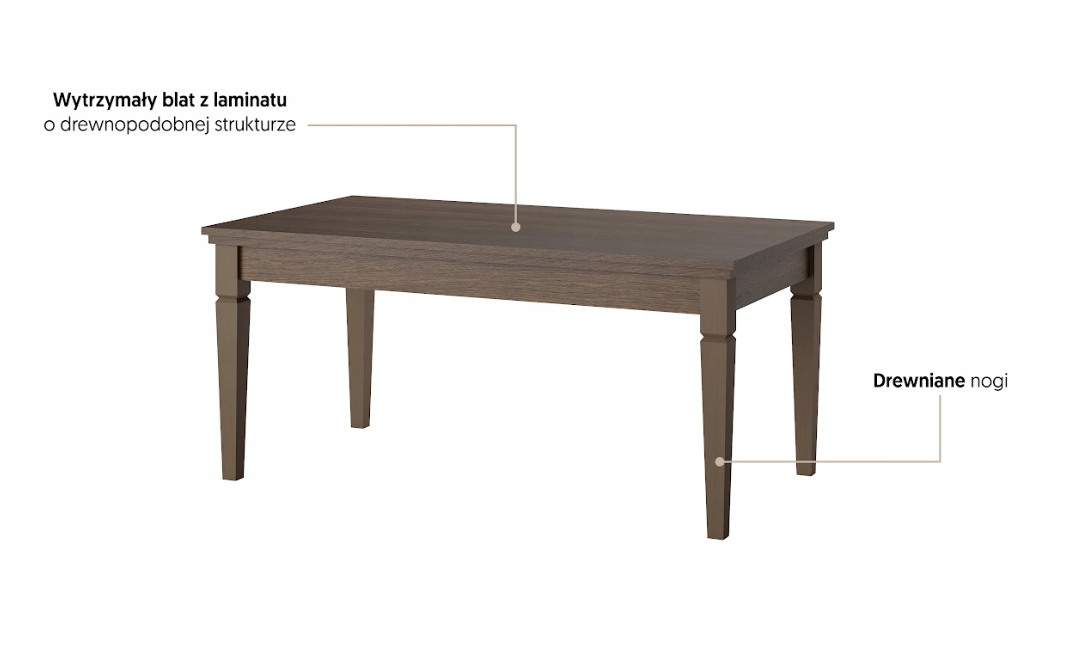 - Odporność na Użytkowanie: Specjalnie wzmocniony blat jest odporny na zarysowania i drobne zachlapania, dzięki czemu stolik zachowa swój estetyczny wygląd przez długie lata.