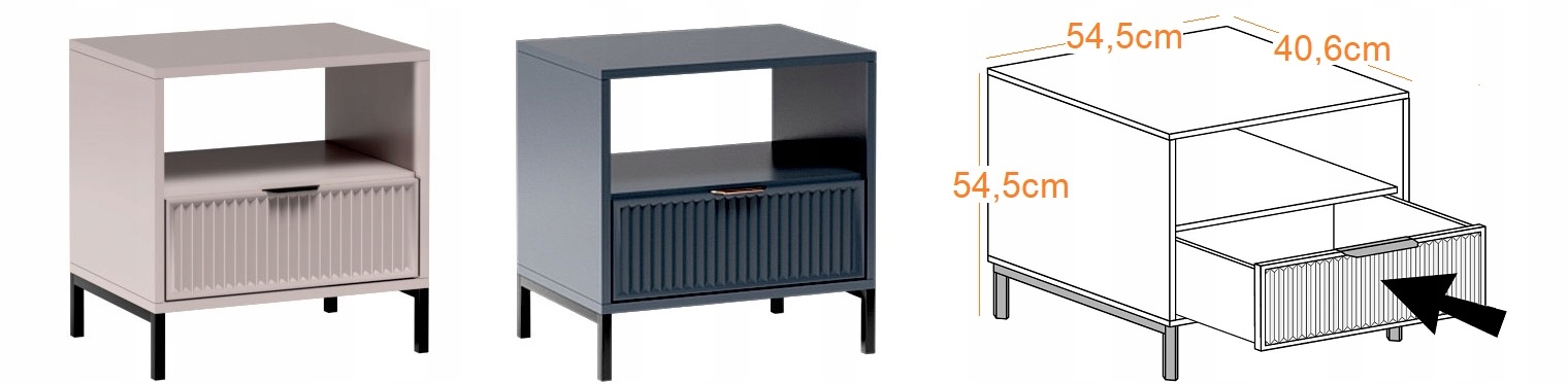 Szafka nocna, która idealnie wpasuje się do każdej sypialni. Dzięki szufladzie i półce staje się bardzo praktyczna i przechowa wiele rzeczy. Dostępna w trzech kolorach – cashmere/indigo/green stone.