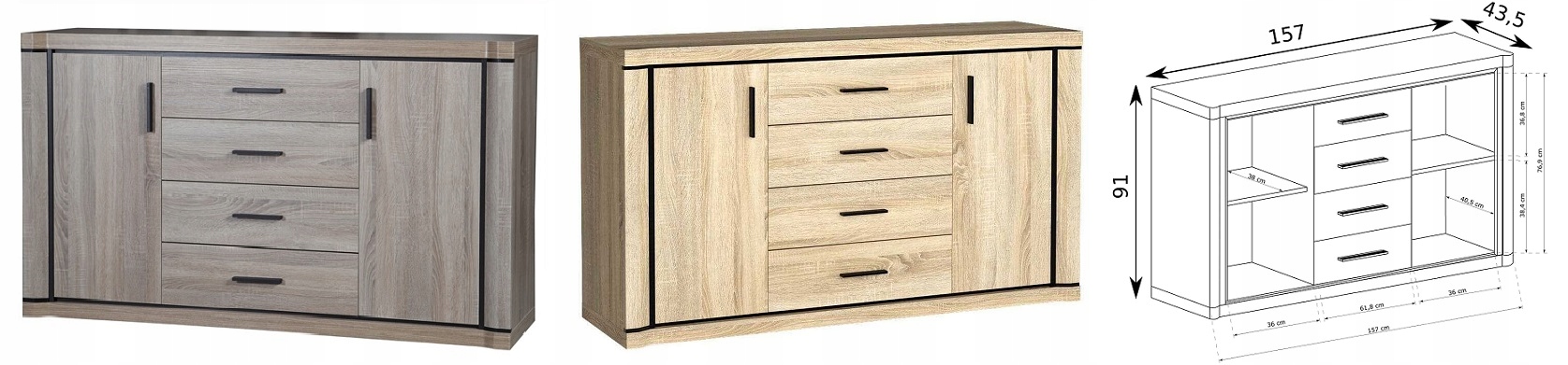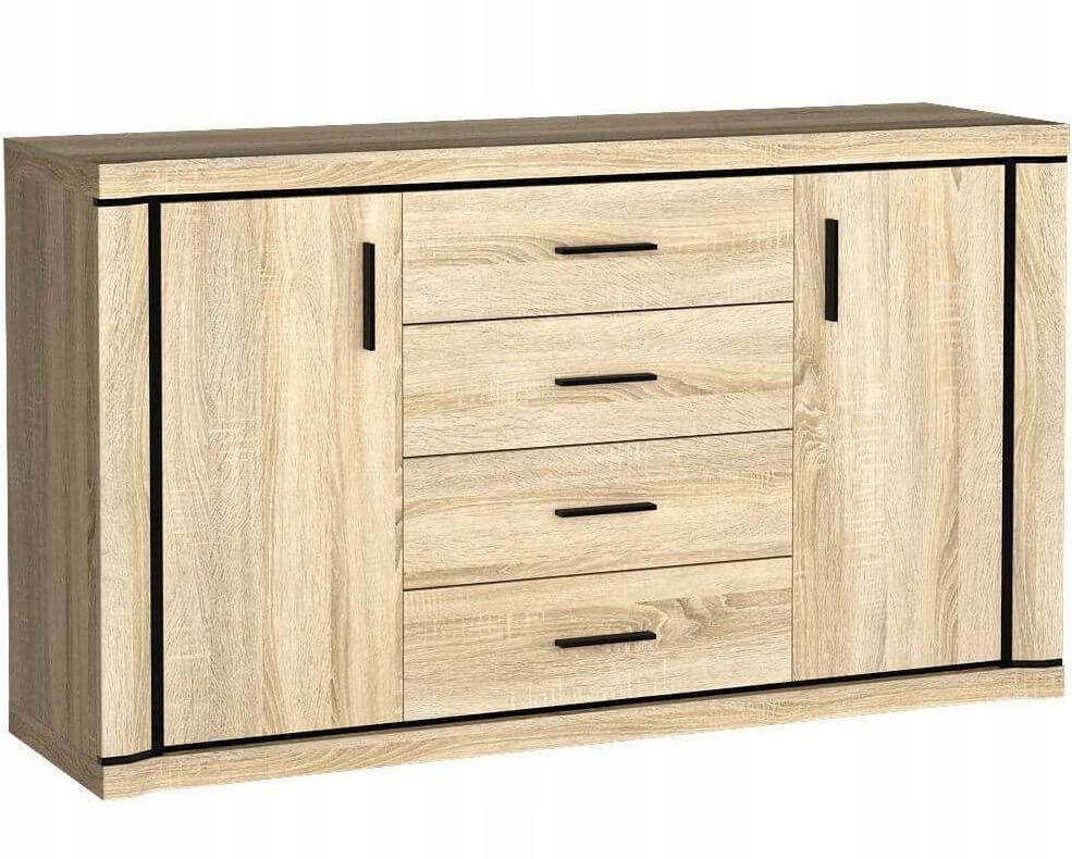 Stylowa Klasyczna duża Komoda Dallas 2D/4S 157 x 45 x 91cm dąb sonoma mat