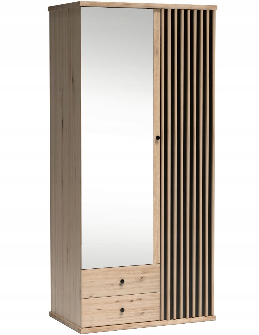 Szafa CALI dwudrzwiowa z lustrem dąb artisan 100cm ryflowane fronty pojemna