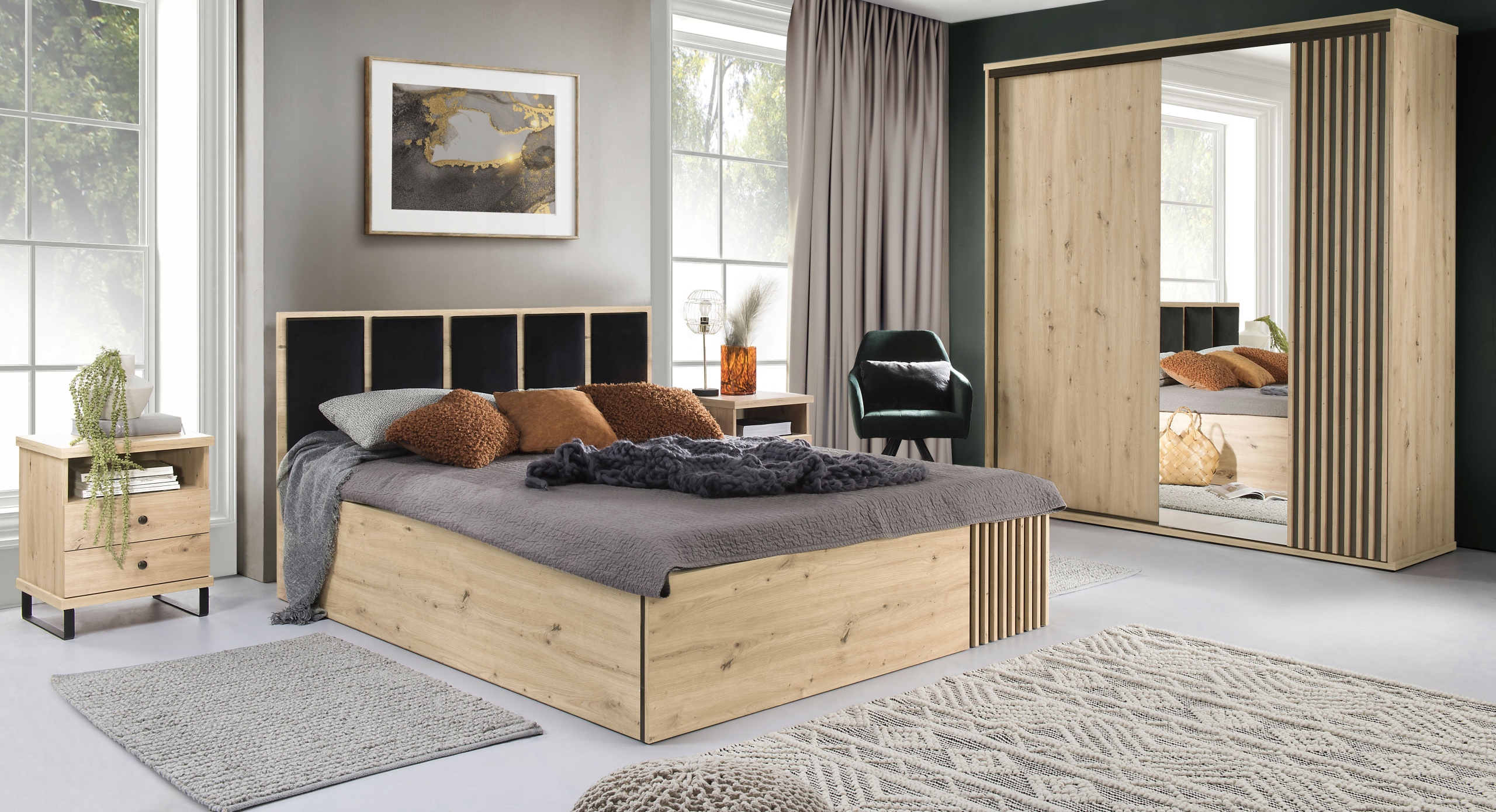 • zagłówek łóżek sypialnianych zdobiony tapicerowanymi płytami