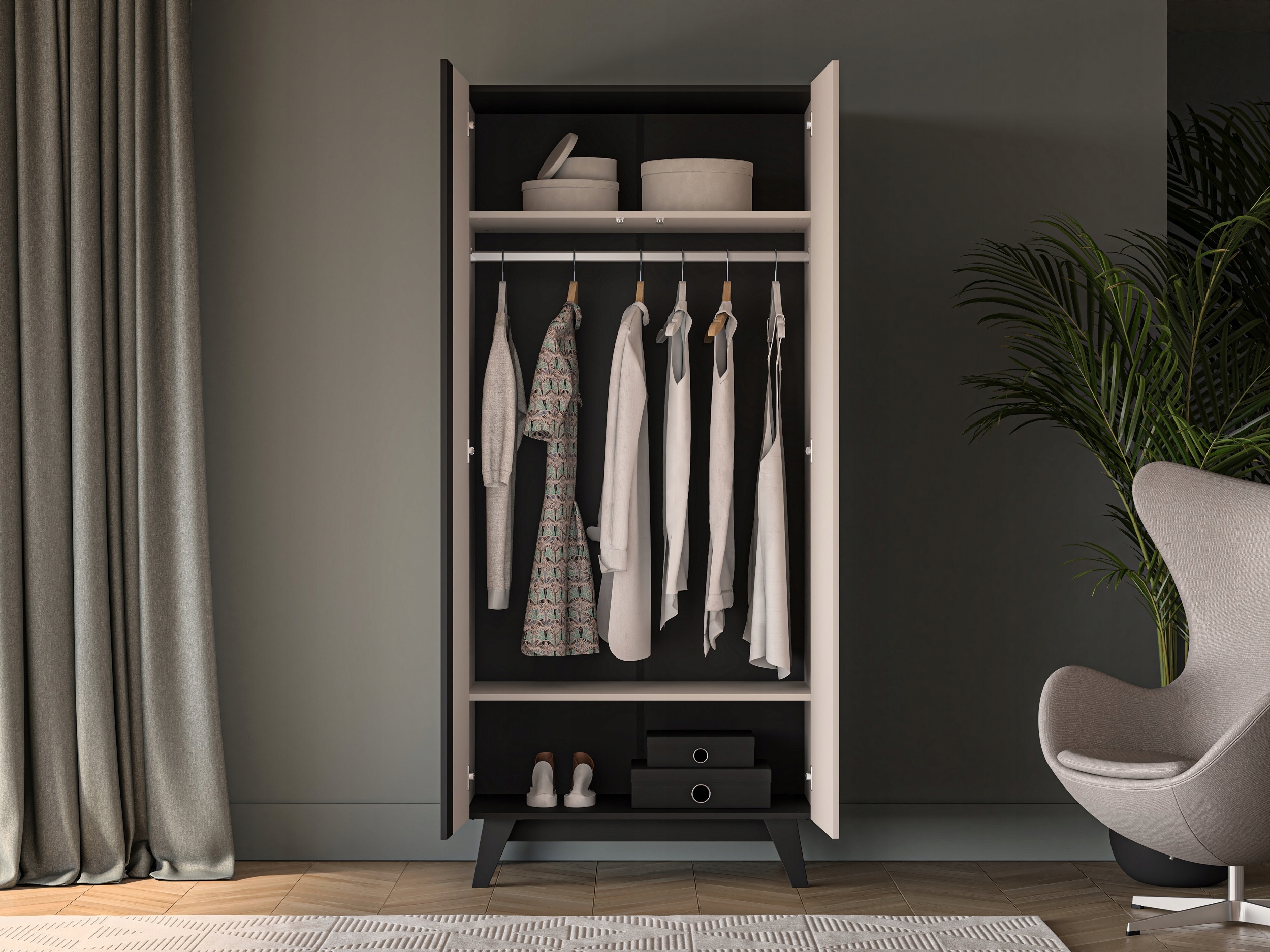 Szafa kaszmirowa Freshion 90 x 200 + czarny nowoczesna dwudrzwiowa szafa