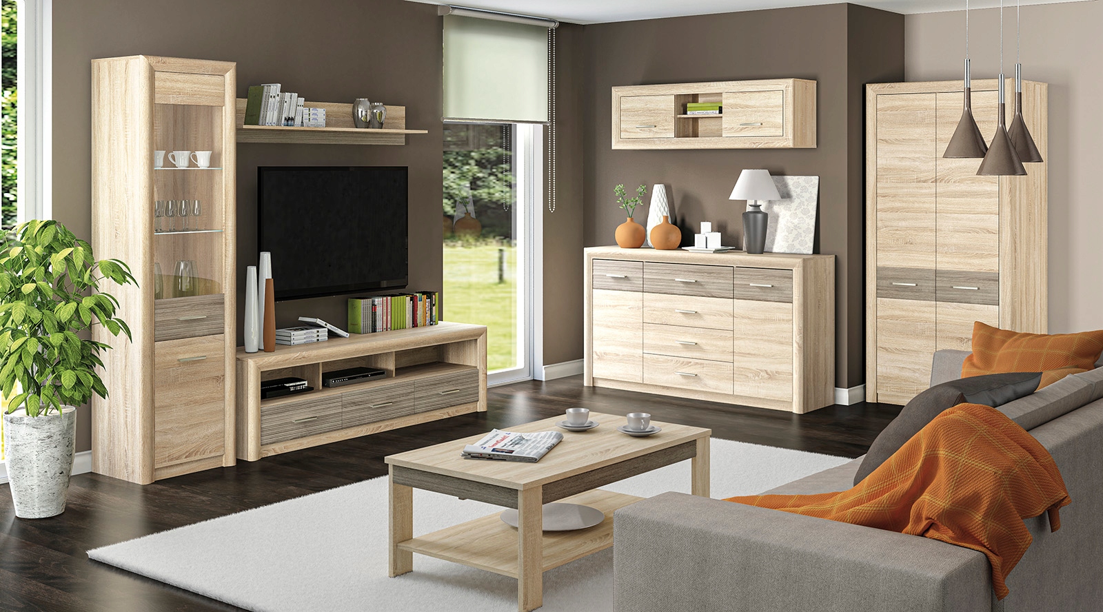- system składa się z 20 brył: szaf, witryn, komód, szafek rtv, pólek, ław, stołu i biurka