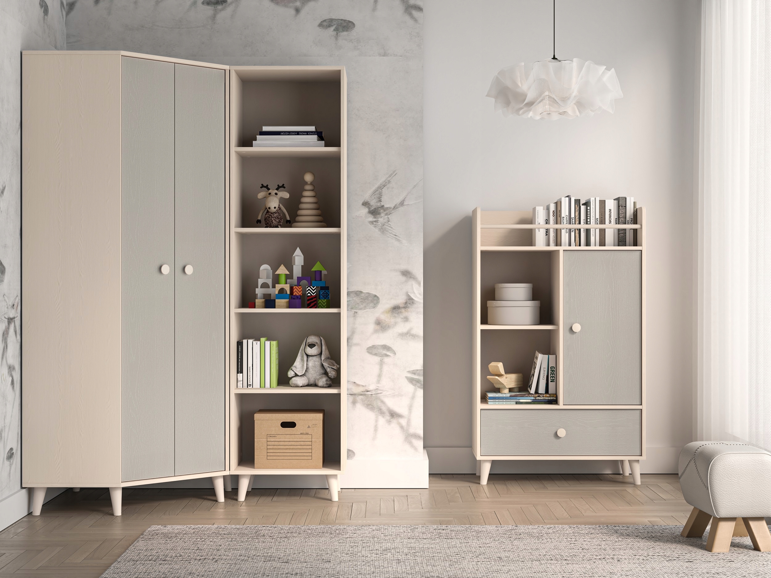Korpus w kolorze Piasek Pustyni wprowadza ciepły, naturalny akcent do pomieszczenia, afronty dostępne w odcieniach Millenial Pink lub Szary Pallad pozwalają na personalizację mebla zgodnie z indywidualnymi preferencjami.