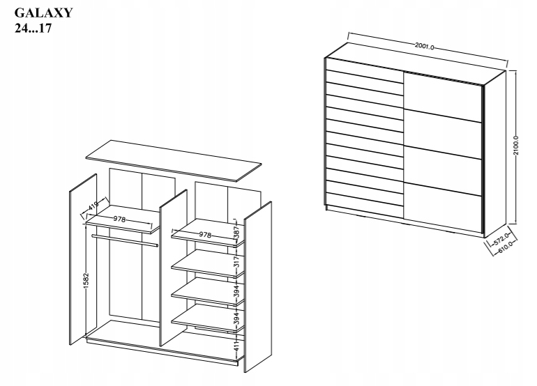 Nowoczesne w każdym aspekcie! szafy Galax zostały zaprojektowane z uwzględnieniem bieżących trendów i oczekiwań klientów w kategorii funkcjonalności. To bardzo duża przestrzeń do przechowywania ubrań, akcesoriów i innych rzeczy niezbędnych w domu, zapewniająca swobodę zagospodarowania miejsca w sypialni, garderobie czy przedpokoju.