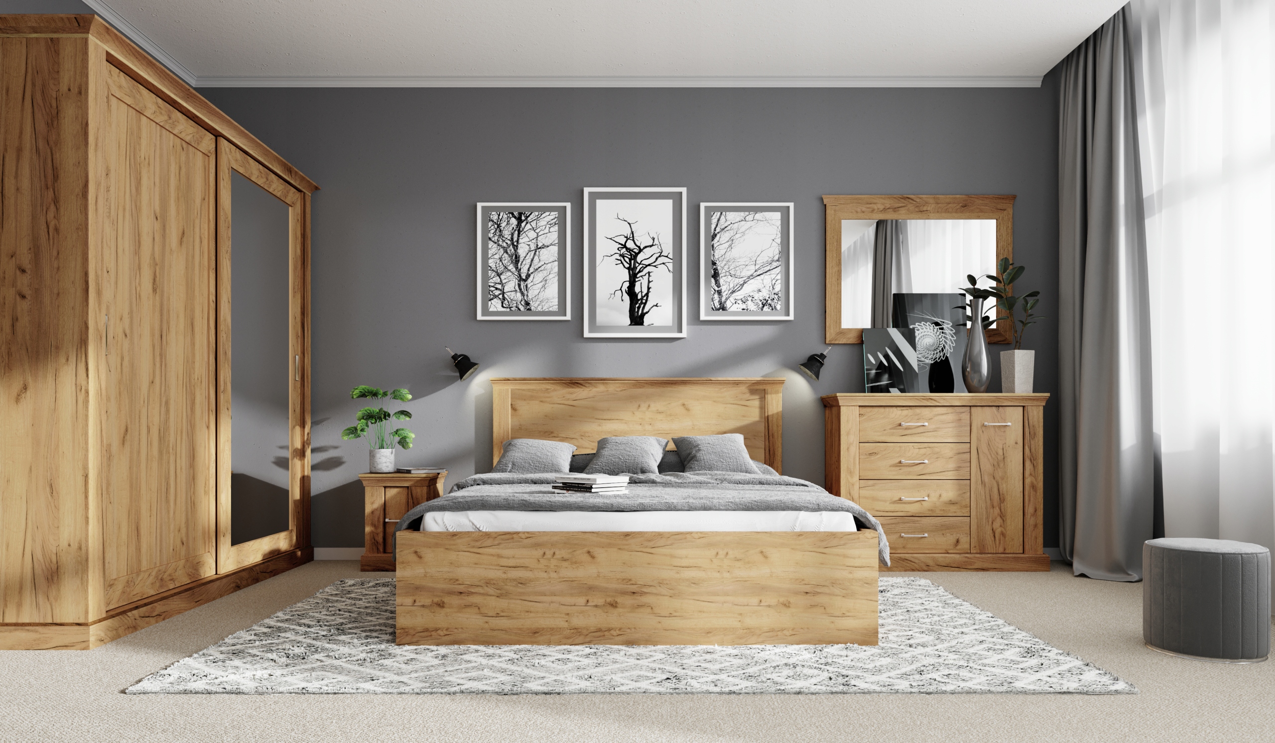 Praktyczna i elegancka szafka nocna pomieści wiele akcesoriów, rzeczy wieczornej rutyny, pozwoli na organizację. Dzięki niej możesz mieć zawsze pod ręką szklankę wody, budzik lub ulubioną książkę. Metalowy uchwyt wraz z cichym domykiem szafki sprawia, że nawet takie detale dodają uroku meblowi.