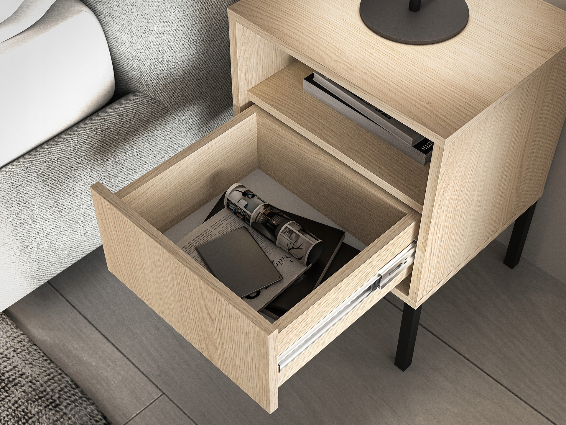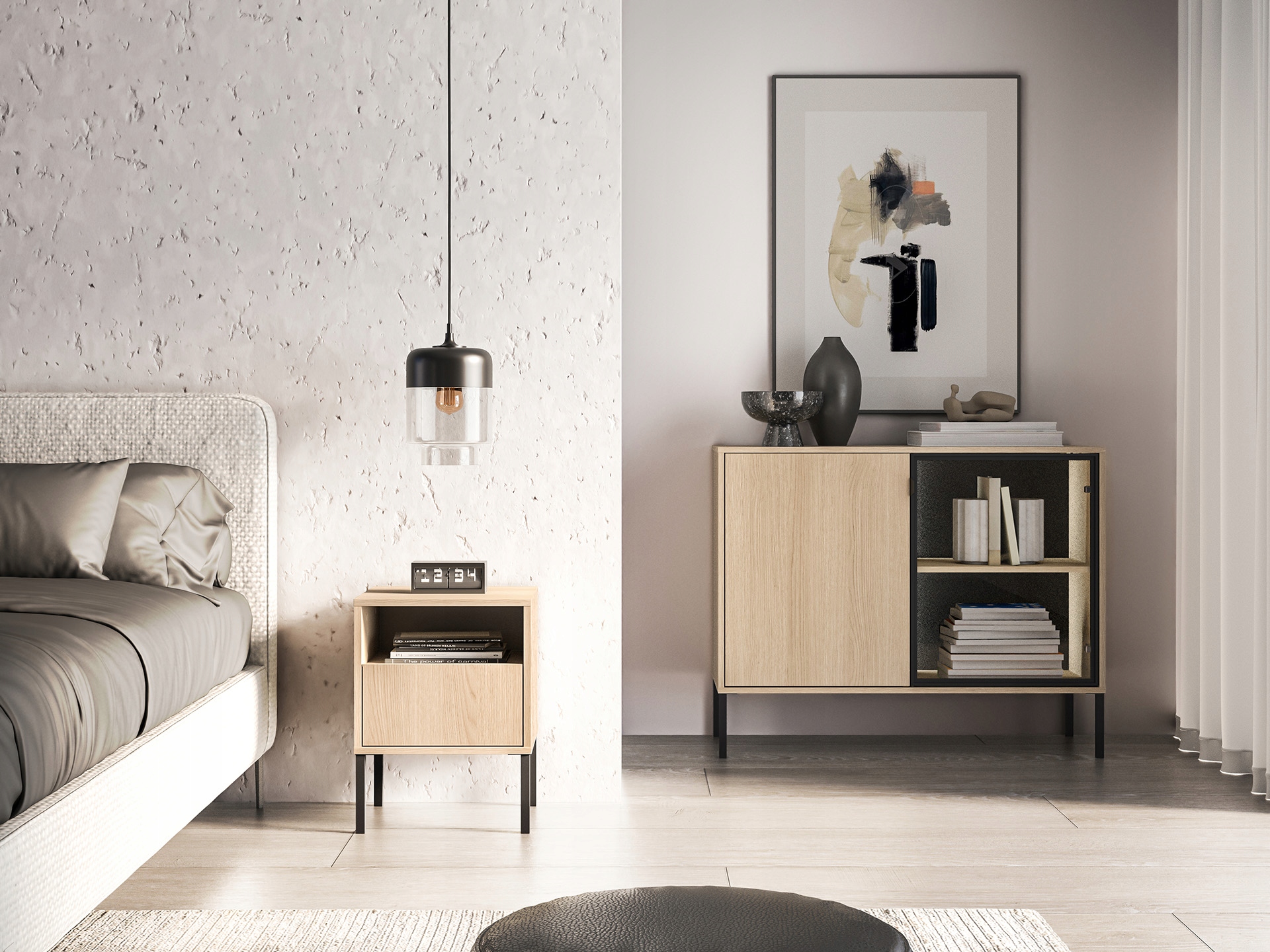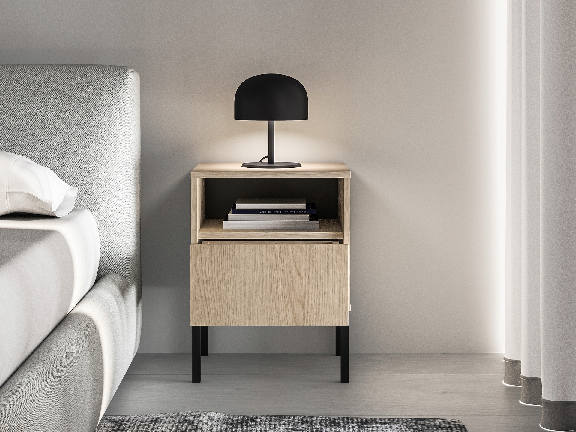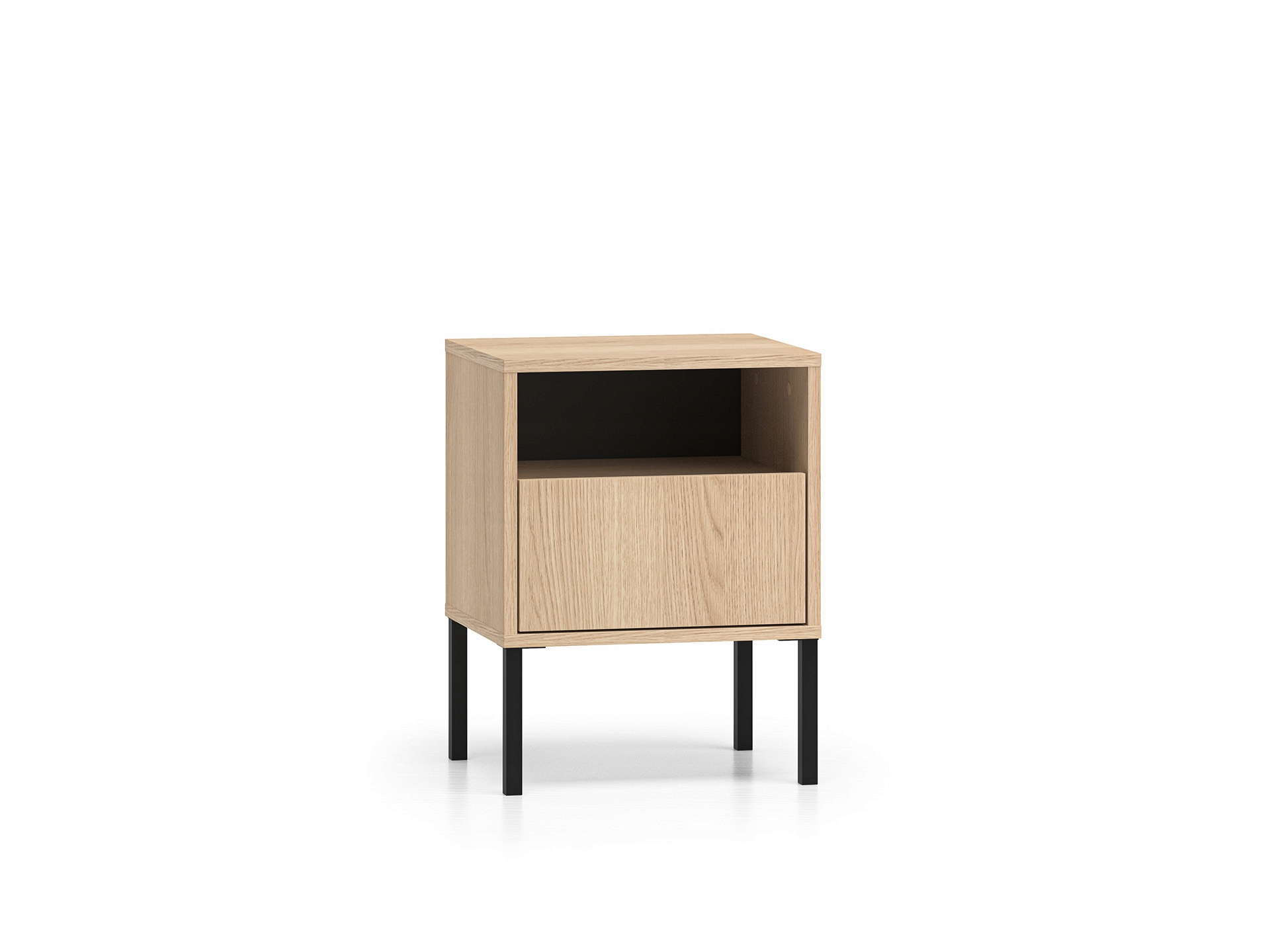 Szafka nocna Barnee 05 to mebel, którego nowoczesnym design oraz funkcjonalność sprawdzi się w każdym współczesnym wnętrzu. Otwarta wnęka to dobre miejsce na odłożenie czytanych książek czy gazet. Pojemna szuflada zapewni dodatkowe miejsce do przechowywania. Na blacie szafki postawisz lampkę nocną oraz inne przedmioty, które chcesz mieć zawsze pod ręką.