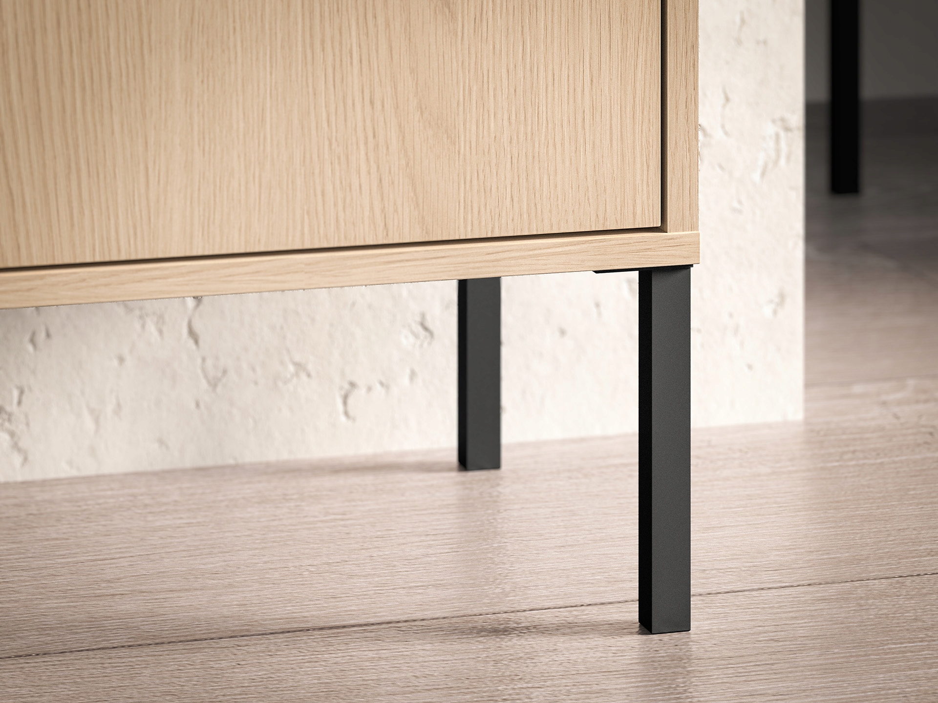 Czarne, metalowe nogi, ułatwiające sprzątanie.