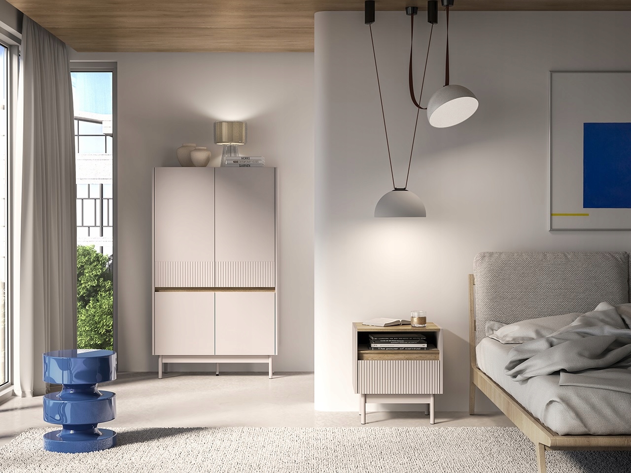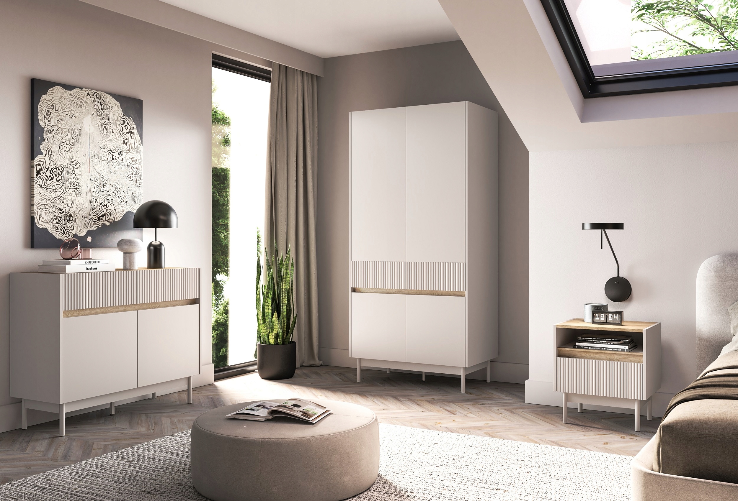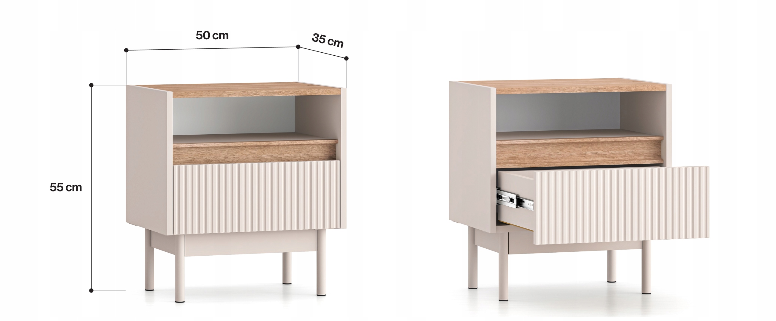 Szafka nocna z szufladą 50×55 ryflowana kaszmir dąb cremona DUNEA 08